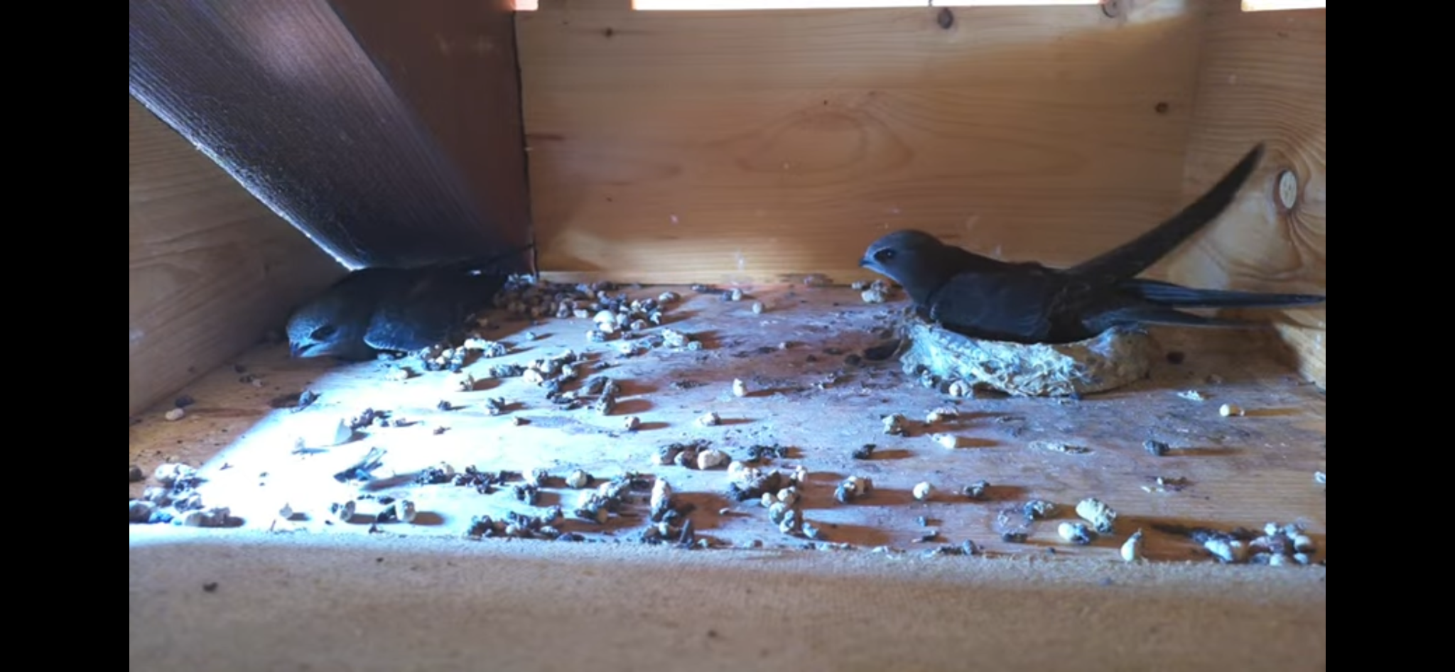 Heute Abend ist noch der eine Altvogel mit dem letzten Juv. im Kasten .