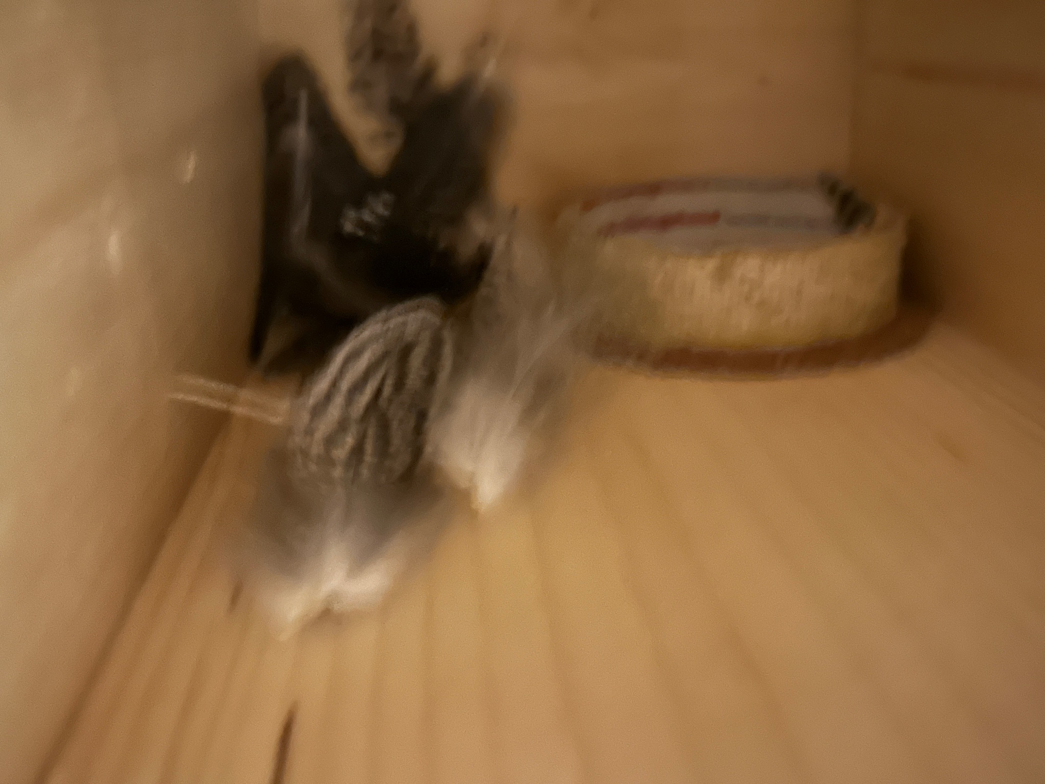 Natürlich wird sich in beiden Kästen etwas Gras und ein paar Federn befinden wenn ich die Kästen wieder aufhänge in ca. 9 Wochen.