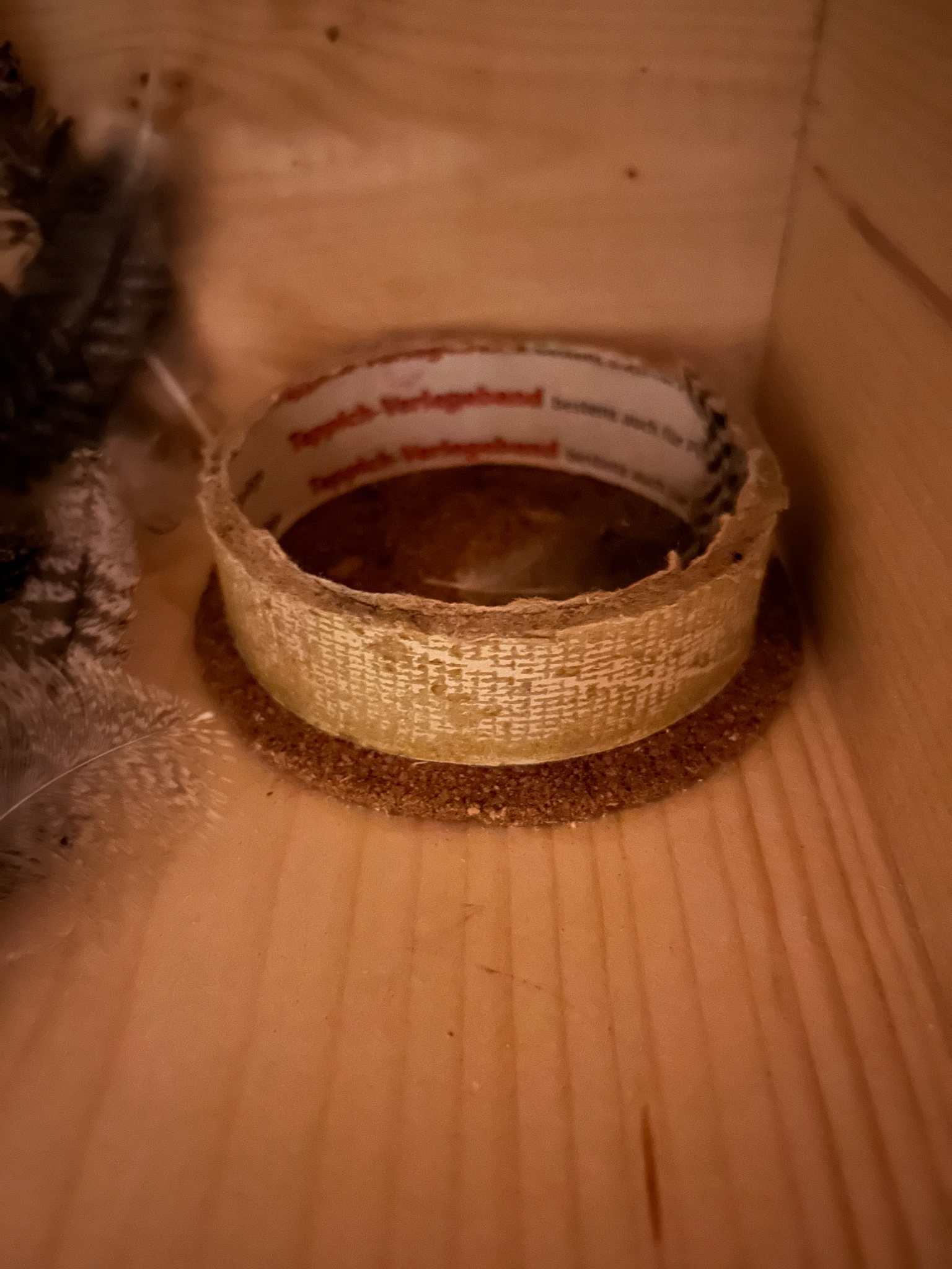 Ich kann zwar nichts dazu sagen was gut funktioniert und was weniger gut aber ich kann euch zeigen wie ich die Nistmulde mangels handwerklicher Perfektion „präpariert“ bzw gestaltet habe.