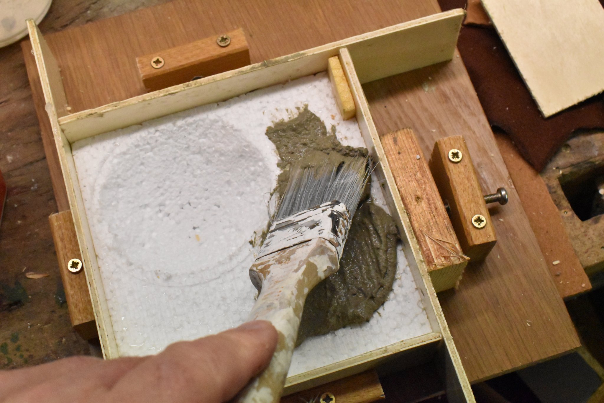 in der Mulde wird eine dünne schicht Leim aufgetragen ...