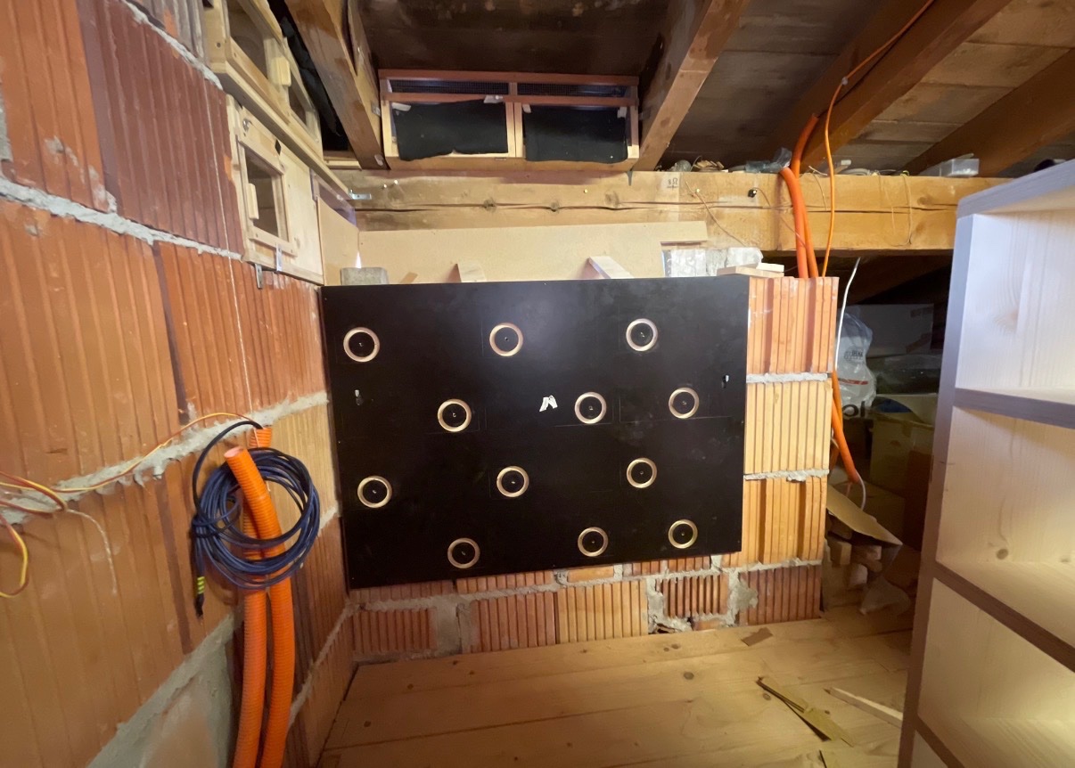 Der Staub war nicht das Problem aber das freihändige Bohren der Löcher in die Hochlochziegel stellte sich als eine anstrengende Arbeit heraus, so dass ich auch aus Zeitmangel erst einmal nur sieben der zwölf vorgesehenen Löcher durch die 34 cm dicke Wand gebohrt hatte .Mit dem Bohren der letzten Löcher in diesem Jahr , hatte ich meiner Maschine dann wohl zu viel abverlangt 🫣, da wäre die Ausführung durch einen Dritten sicher günstiger gekommen 🤷‍♂️.