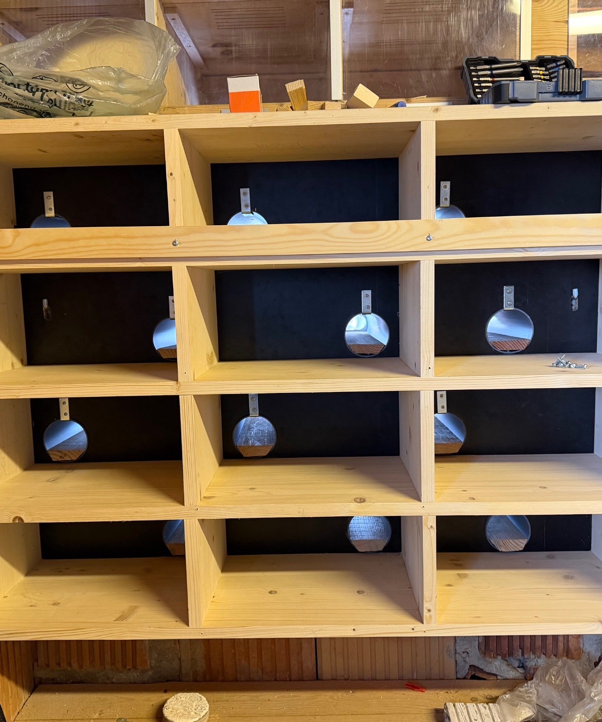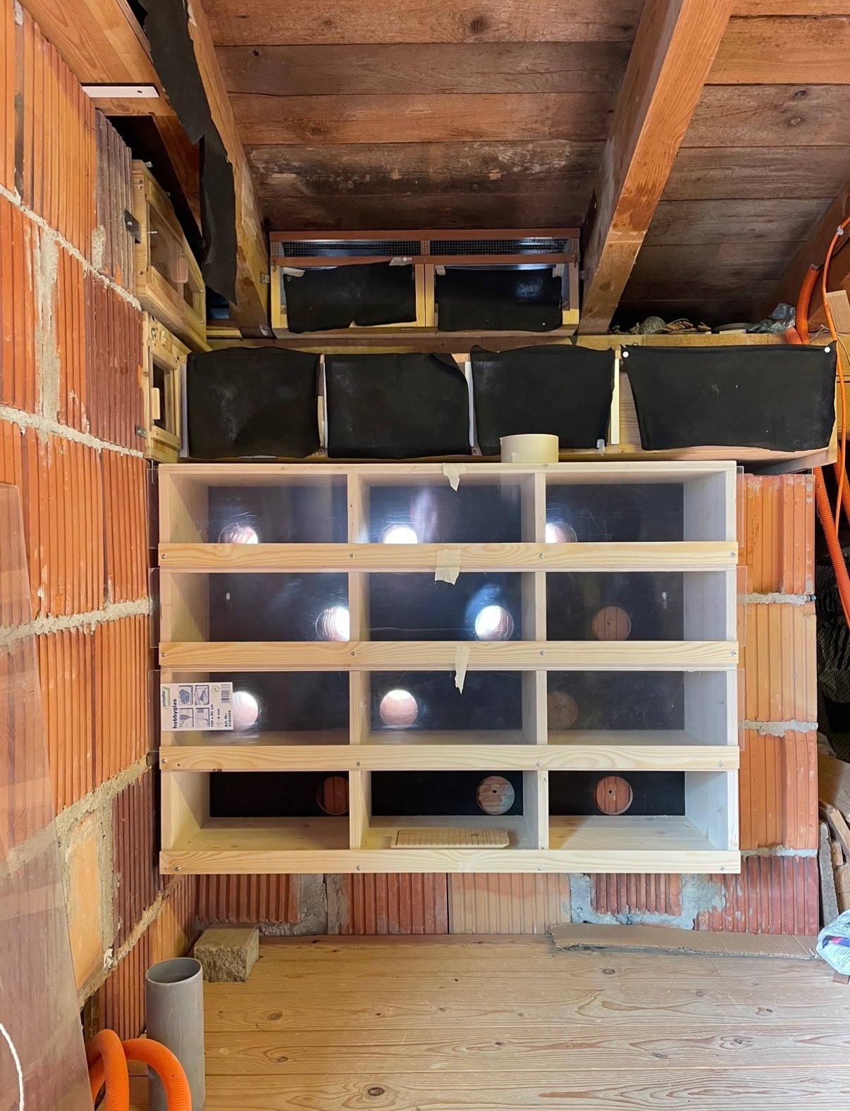 Die Scheiben zum Verschließen der Fächer habe ich aus Plexiglas gefertigt, in die , wie bei dir noch Löcher zur Belüftung gebohrt werden müssen .