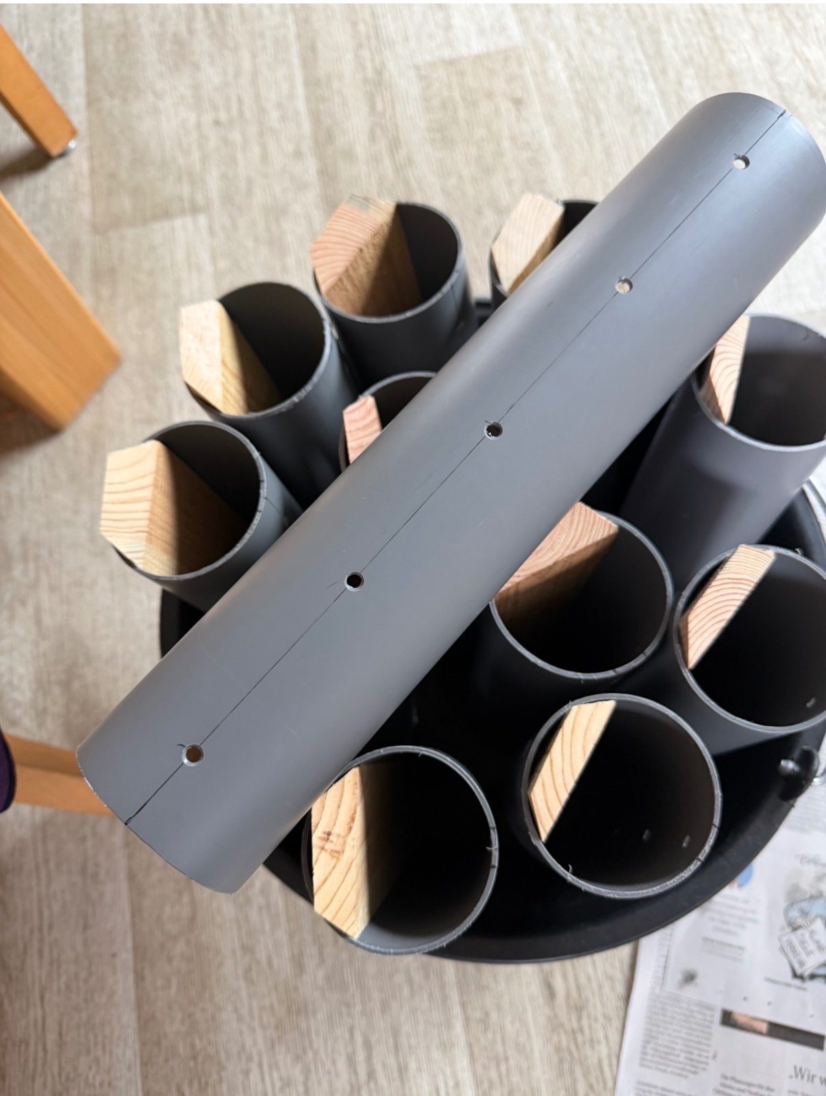Zur Auskleidung der Bohrlöcher nahm ich 75 mm messende HT Rohre.
