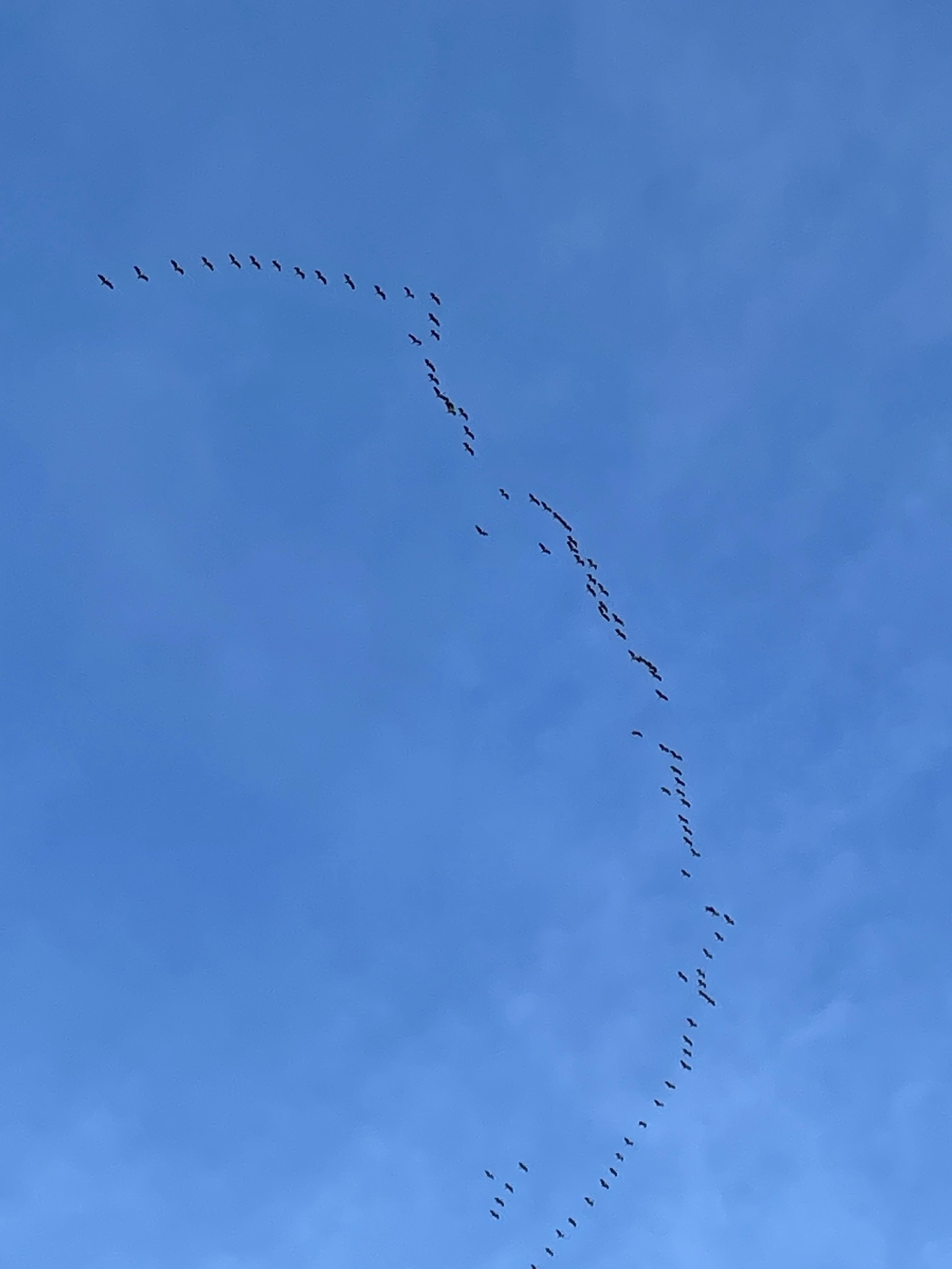 eine beeindruckende Menge von Kranichen, die sich da auf den Weg Richtung Süden machen.