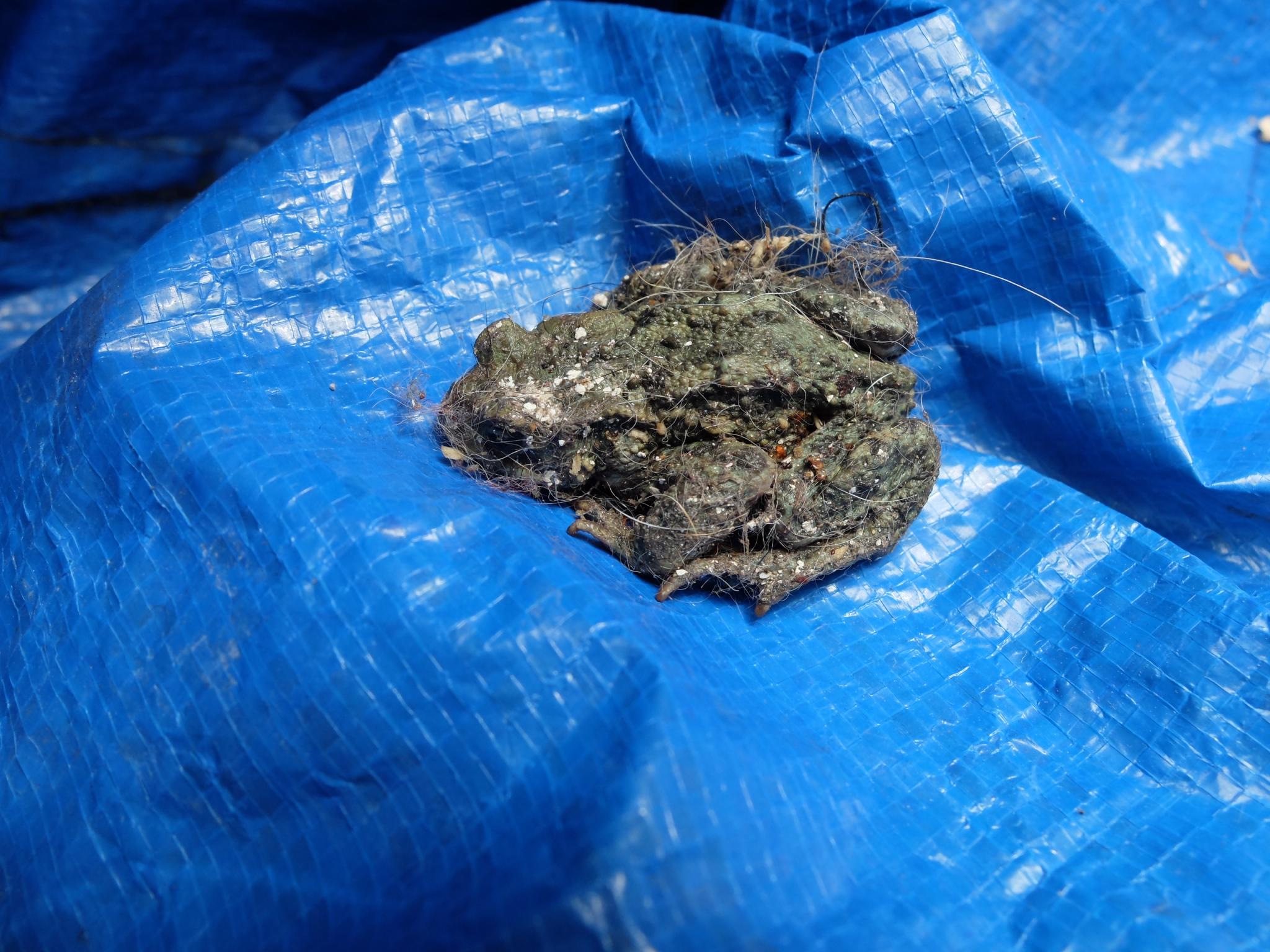 Heute hat meine Katze eine kleine Kröte im Keller entdeckt. Sie war völlig eingestaubt und mit Katzenhaaren garniert. :shock:
