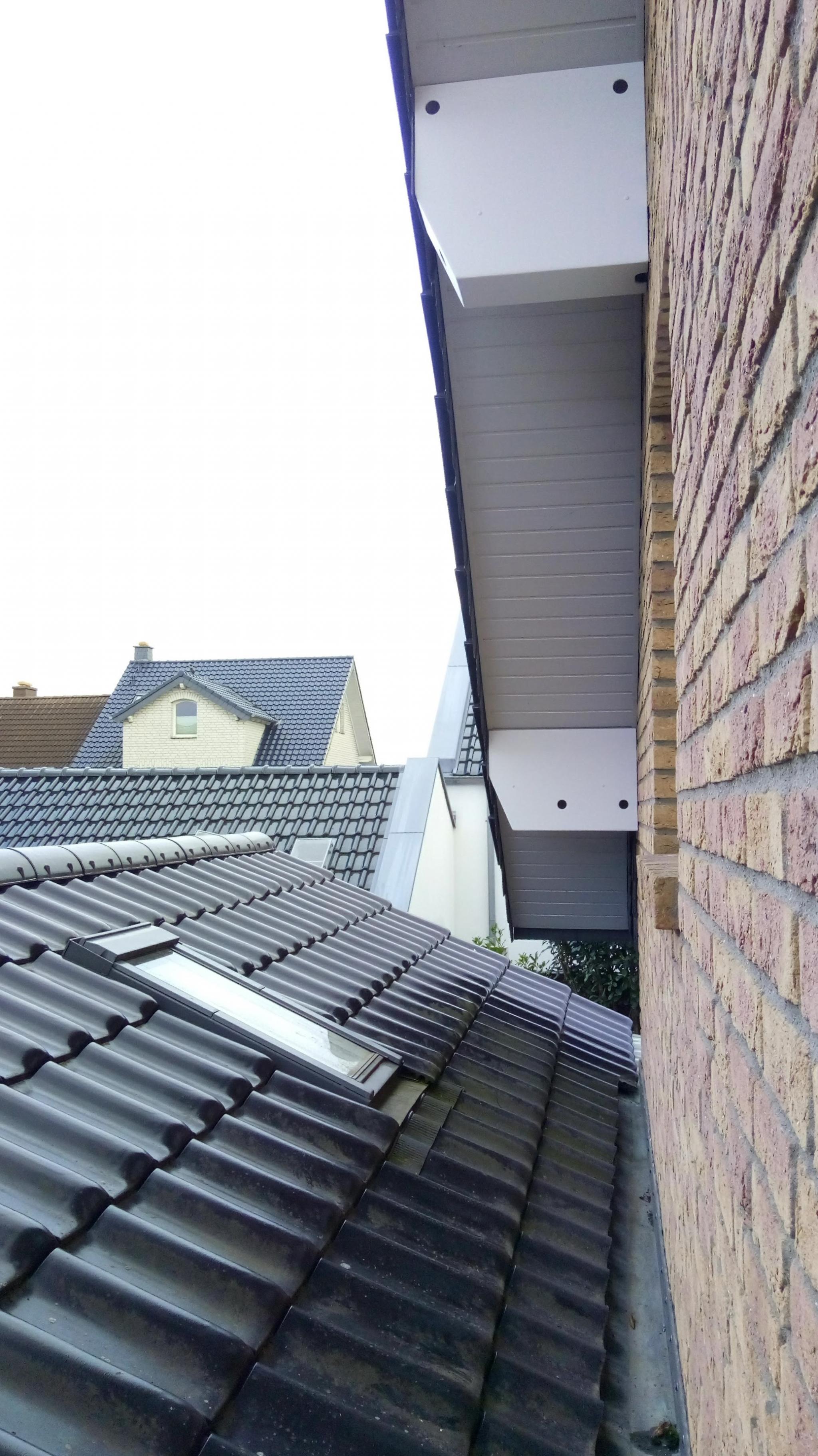 Mein Dachstuhl wurde damals mit Vollholzbalken gezimmert. Heute nimmt man lieber Leimbinder, weil die nicht mehr arbeiten und so geeigneter sind. Ich hatte aber vor 20 Jahren wenig Kenntnis von solchen Sachen und die Beratung war damals auch sehr dürftig. Jetzt nach Jahren waren die Balken rissig, teilweise arg verdreht und neue Farbe war auch nötig. Dann hatte ich die Idee einfach eine Verkleidung darüber zu setzten. Die sollte etwas grösser sein nach unten und oben, und in die entstandenen Hohlräume hätten dann Vögel, wie Stare oder Sperlinge platz. Sollten sich Mauersegler dahinein verirren, um so schöner. Also erstmal alles ausgemessen und dann eine 1:1 Zeichnung auf Rauhfasertapete erstellt. Dabei konnte ich die Unterteilung besser vornehmen und es macht mir immer wieder Spaß etwas zu zeichnen. Beim Material entschied ich mich für 8mm Pappelsperrholz. Das ist preiswert und hat wenig Gewicht. Nach 14 Tagen war alles fertig und dann wurde angebaut. Leider musste ich mich einmal wieder, dem Phänomen Theorie und Praxis stellen. Trotz sorgfältigster Messerei, ist es doch an einigen Stellen etwas luftig geworden. Also wieder in die Werkstatt und nachgebessert. Meine Nachbarn alle im Homeoffice, haben jeden Schritt verfolgen können.