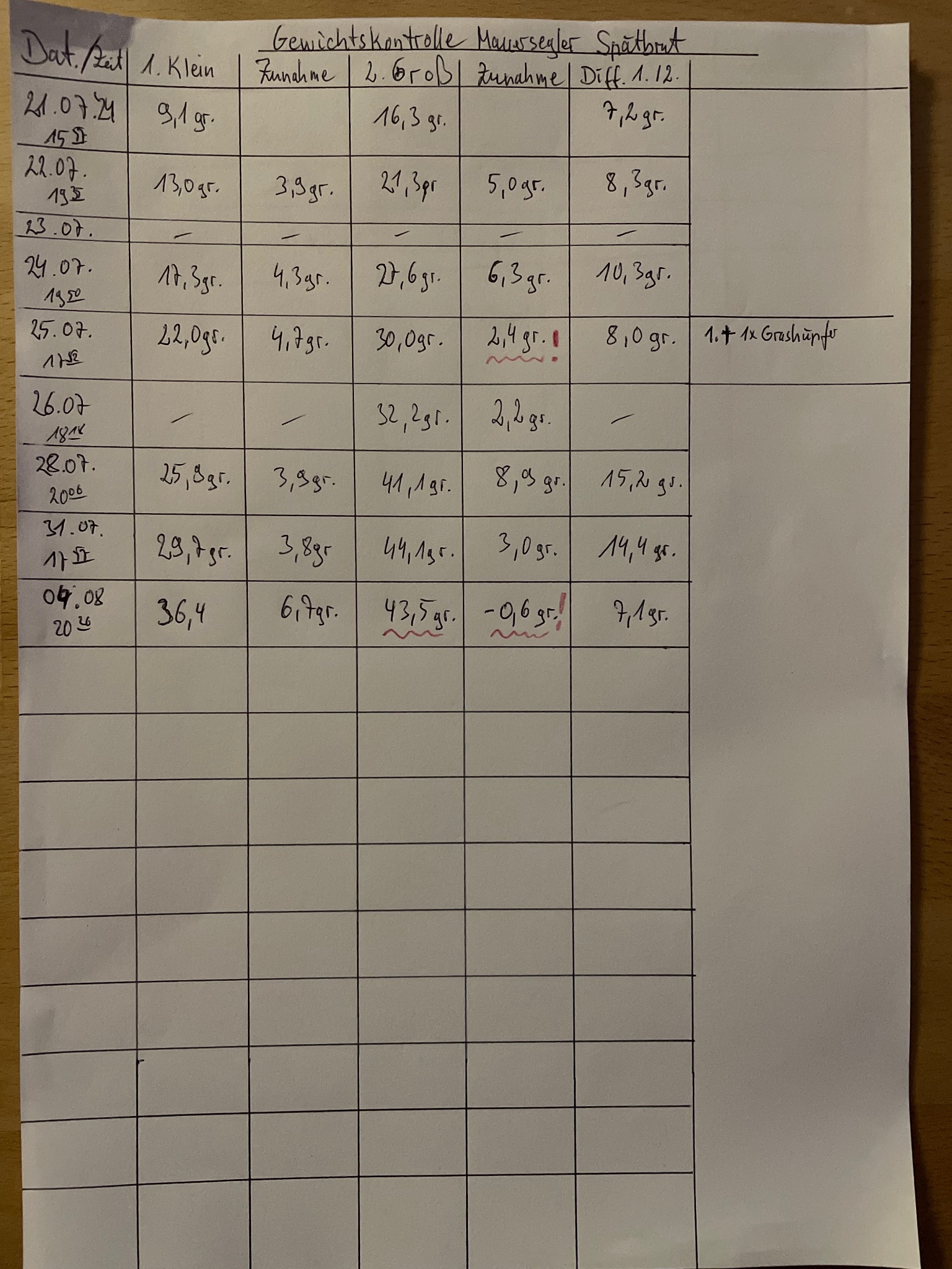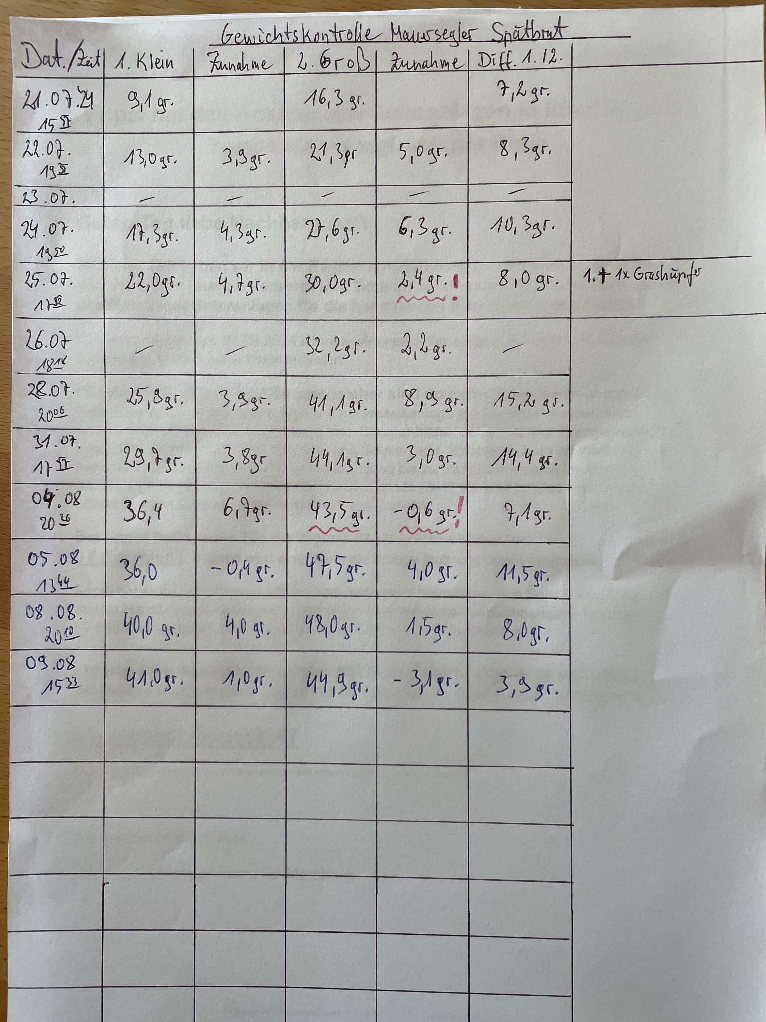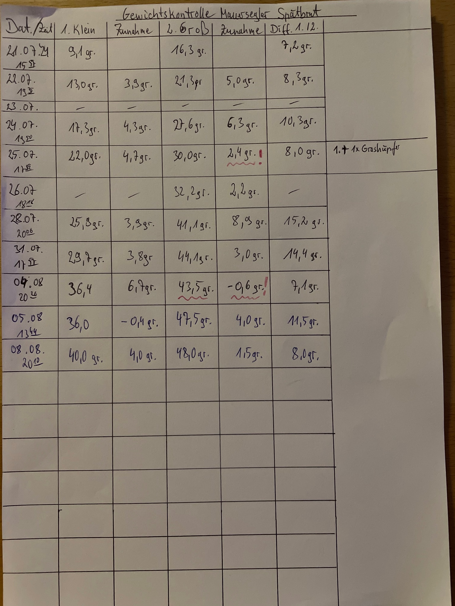 hier einmal die letzten Wiegedaten /Fotos vom 05.08.