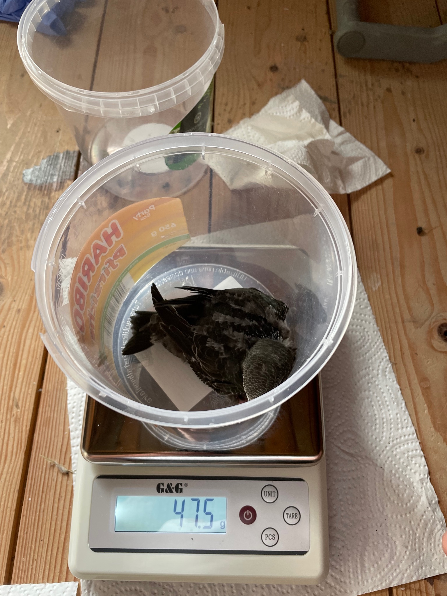 wie wahrscheinlich eine gute Versorgung im August und September ist, versuchen wir gerade durch das Wiegen der noch vorhandenen JV herauszufinden. Bislang scheint die Versorgung gesichert zu sein. Man muss wohl davon ausgehen, dass ältere JV wesentlich seltener von AV aufgesucht werden. Bin gespannt mit welchem Gewicht unsere jüngsten ausfliegen. Wie beschwerlich der Zug in den Süden für die „Nachzügler“ ist, wissen wir nicht. LG