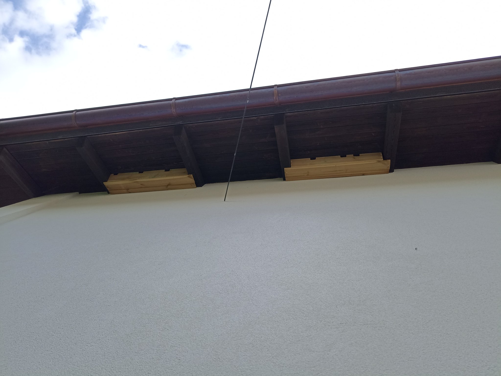 Zu den Einflügen: kann und wird auch funktionieren. Etwas leichter zu finden sind nach meiner Erfahrung allerdings Einfluglöcher, die weiter oben am Frontbrett angebracht sind. Wenn ich das Projekt bauen sollte, würde ich Einflüge abwechselnd unten (so, wie Du es ja gemacht hast), in der Mitte und an der Oberkante des Frontbretts anbieten. Der tiefe Einflug kann leider auch das gelegentliche Abstürzen von JV ermöglichen. Solltest Du die Kästen teilen, kannst Du einen Teil der Einflüge direkt an die Wand verlegen. Hier dürfen sie etwas größer sein.