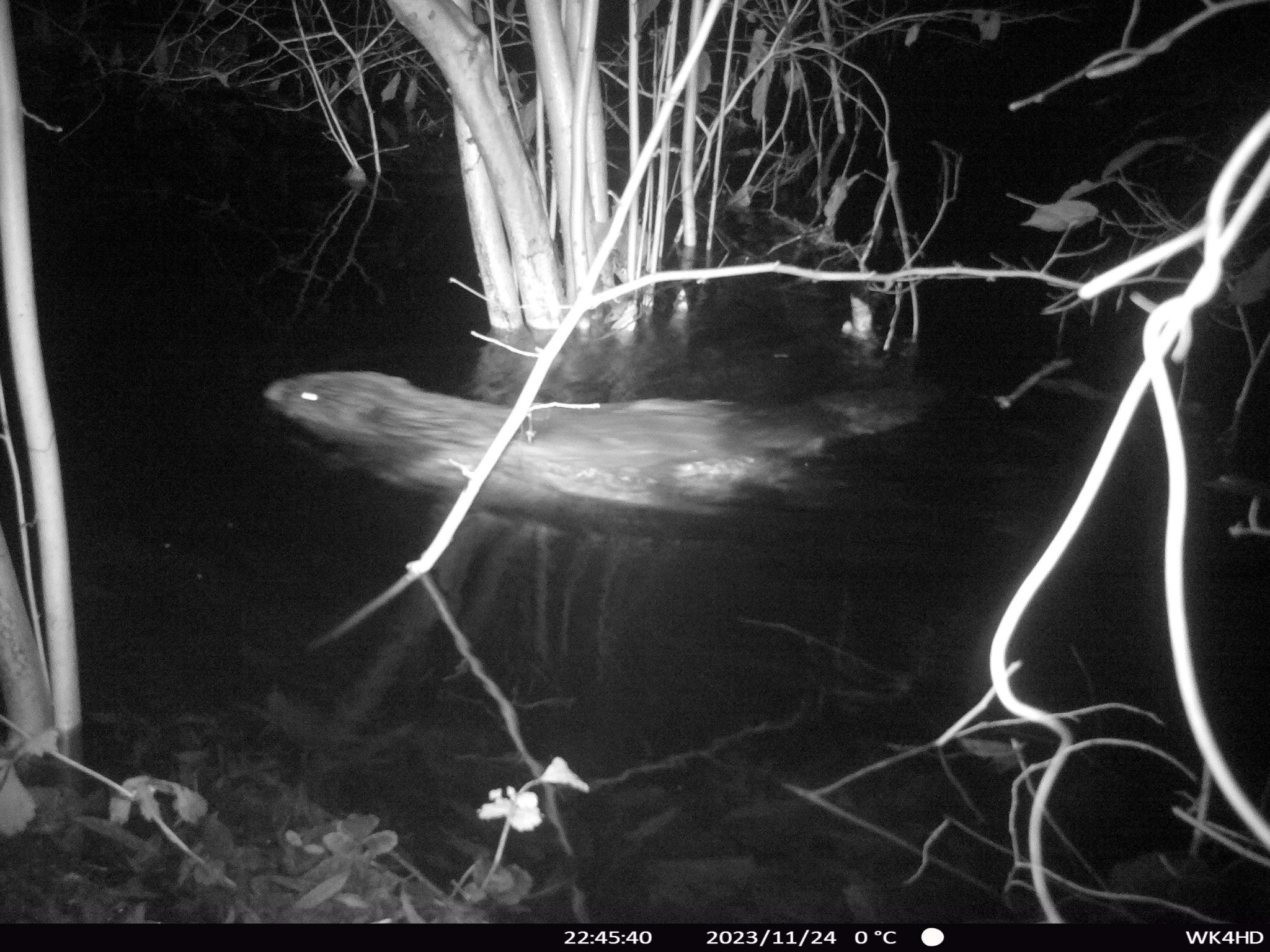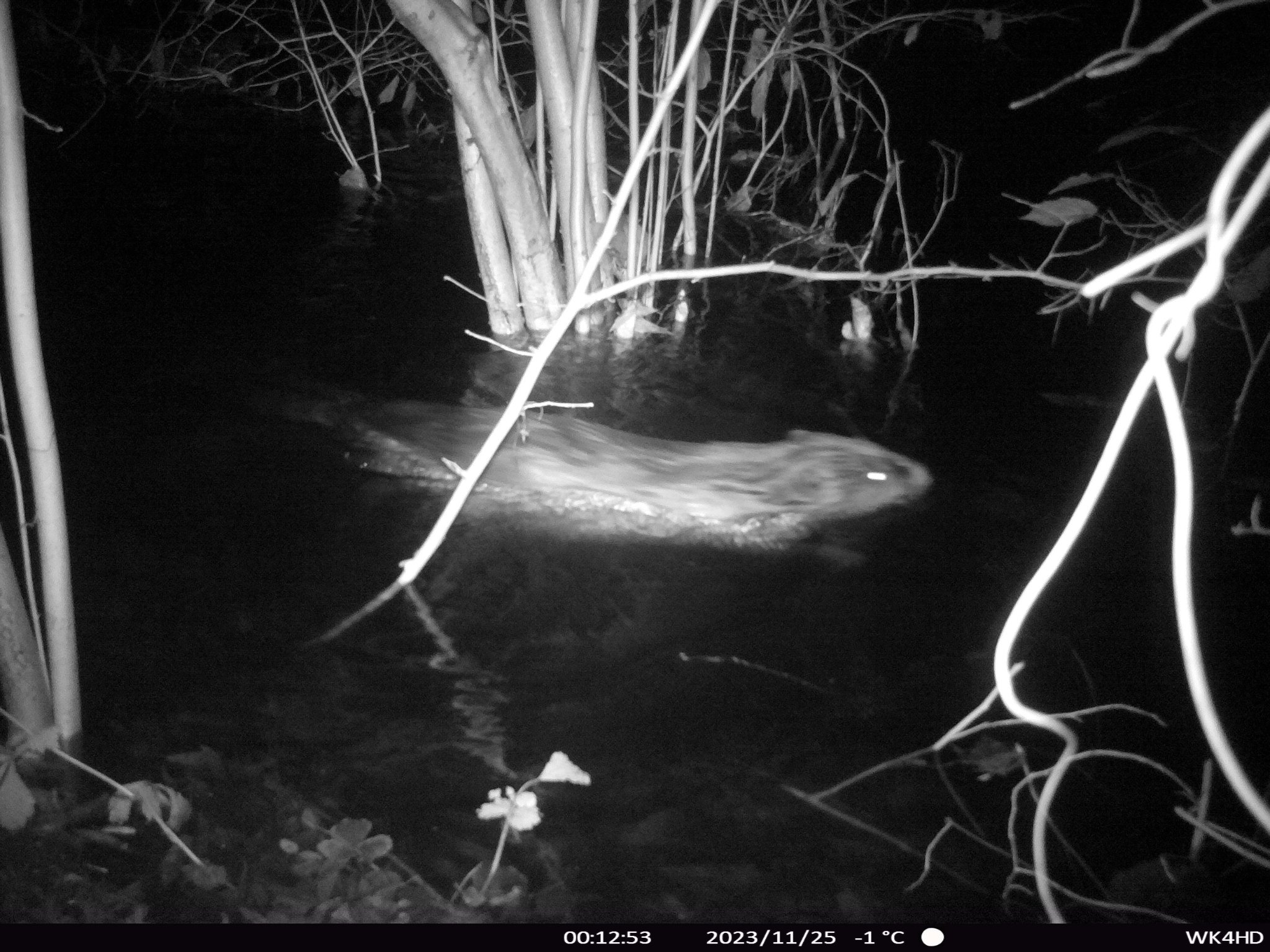 letzte Woche war Hochwasser. Der Biber ist durch das Kamerabild geschwommen.