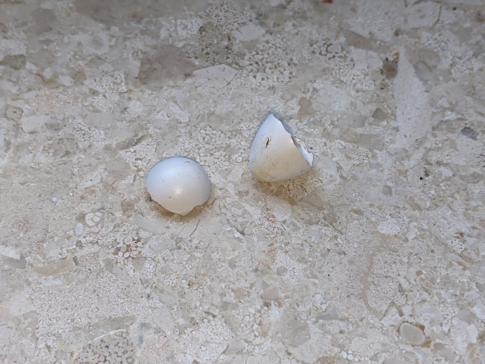 Des Weiteren lag die erste Eierschale auf dem Kotbrett.