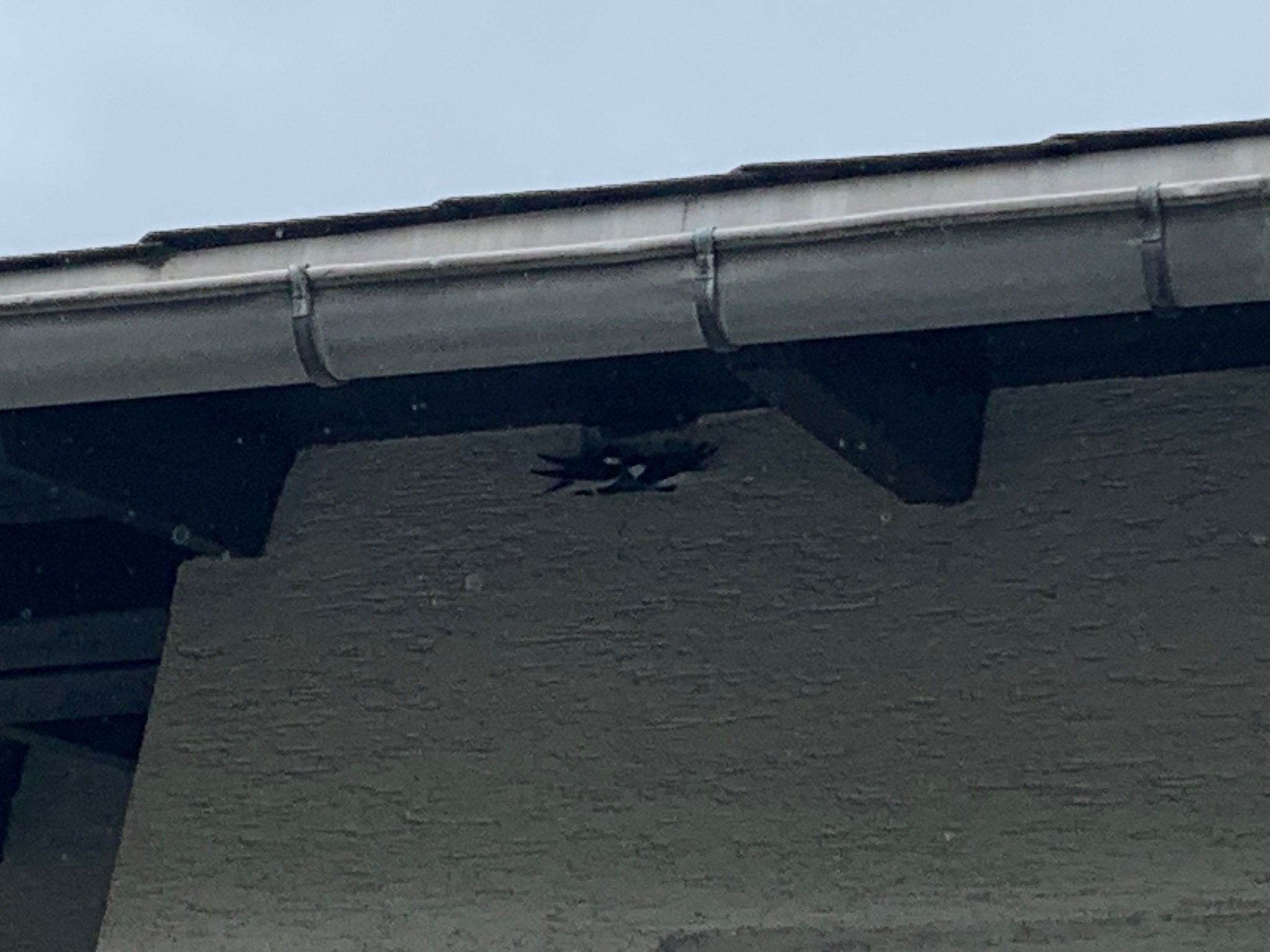 Dort war heute wieder eine Schwalbe, die es nicht durch das Einflugloch schaffte , obwohl dort schon gebrütet wurde.