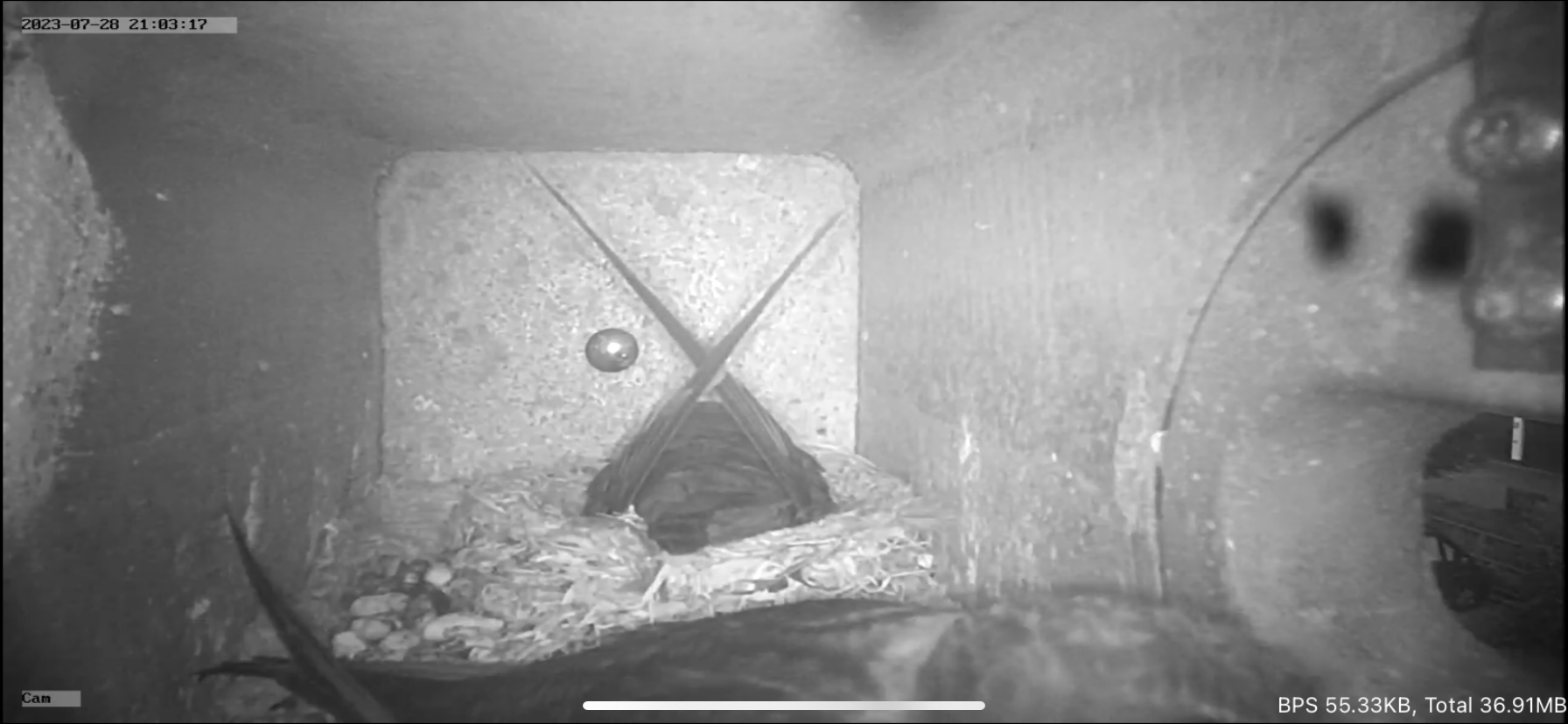 Es handelt sich hier um eine Neuansiedlung. Das weggerollte Ei konnte ich erst nach 40 h unbebrütet zurücklegen. Die Jungsegler haben sich toll entwickelt.