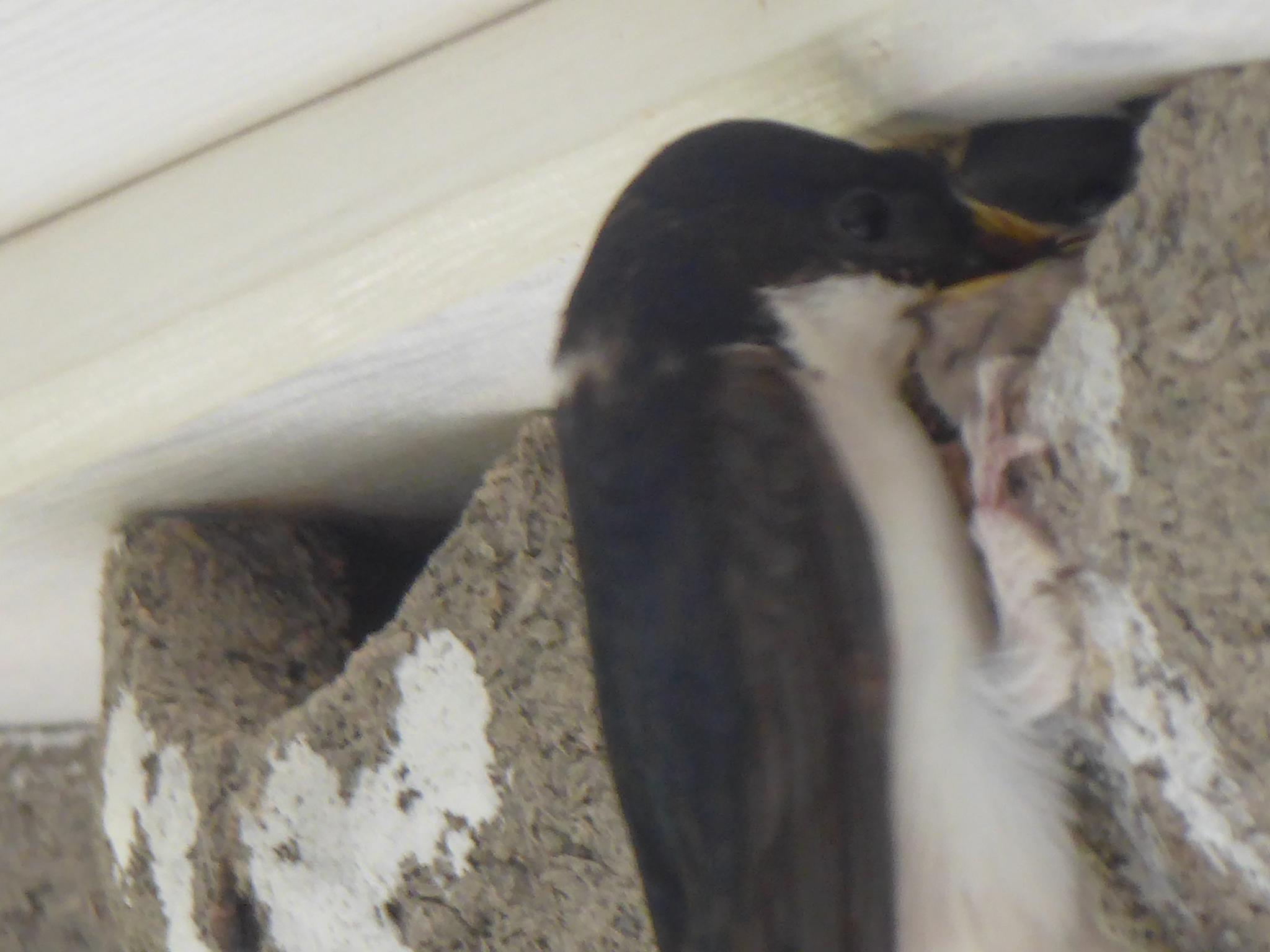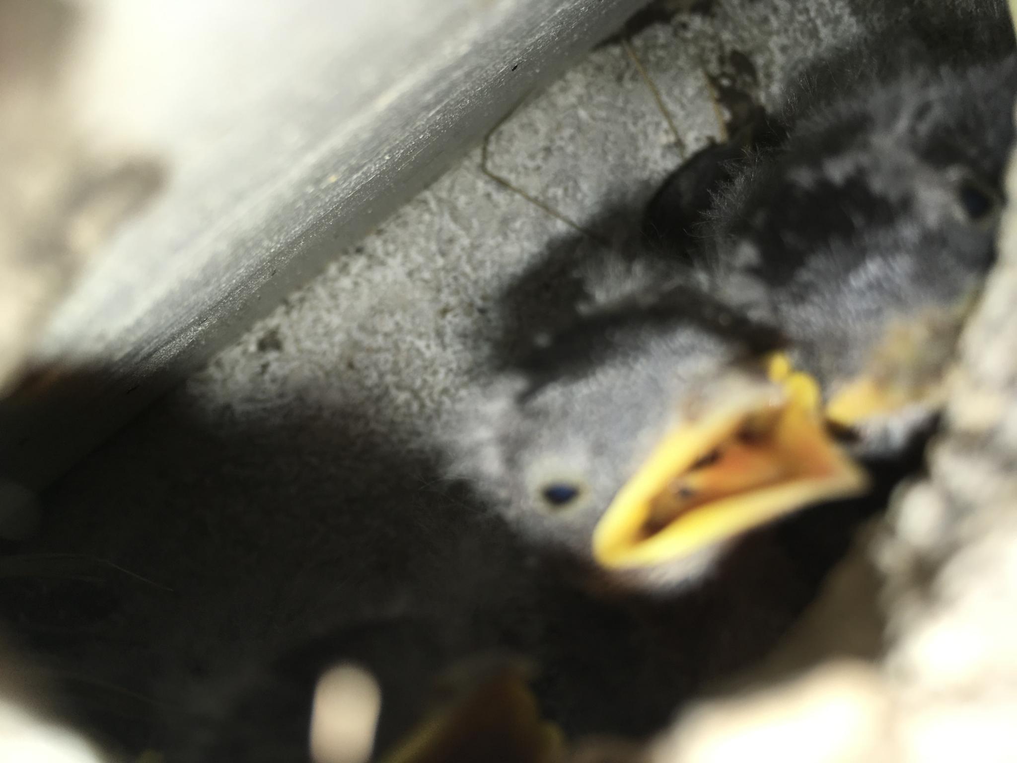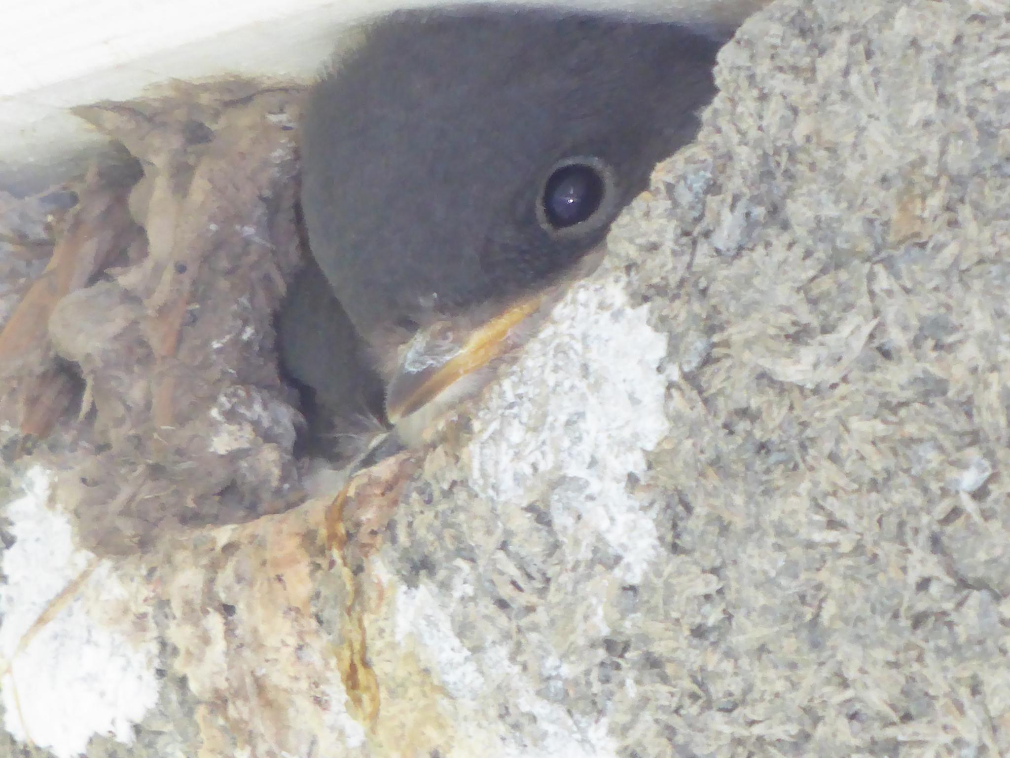 Mehlschwalbenküken vorfinden. Zu meinem Erstaunen lebte es noch !
