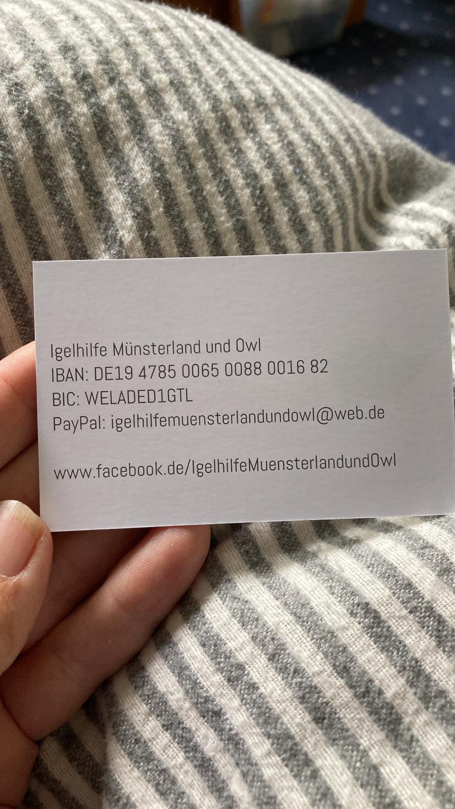 Die Spenden laufen an die "Igelnothilfe Münster und OWL" und gelangen dann auch zur Pflegestelle in Gütersloh.