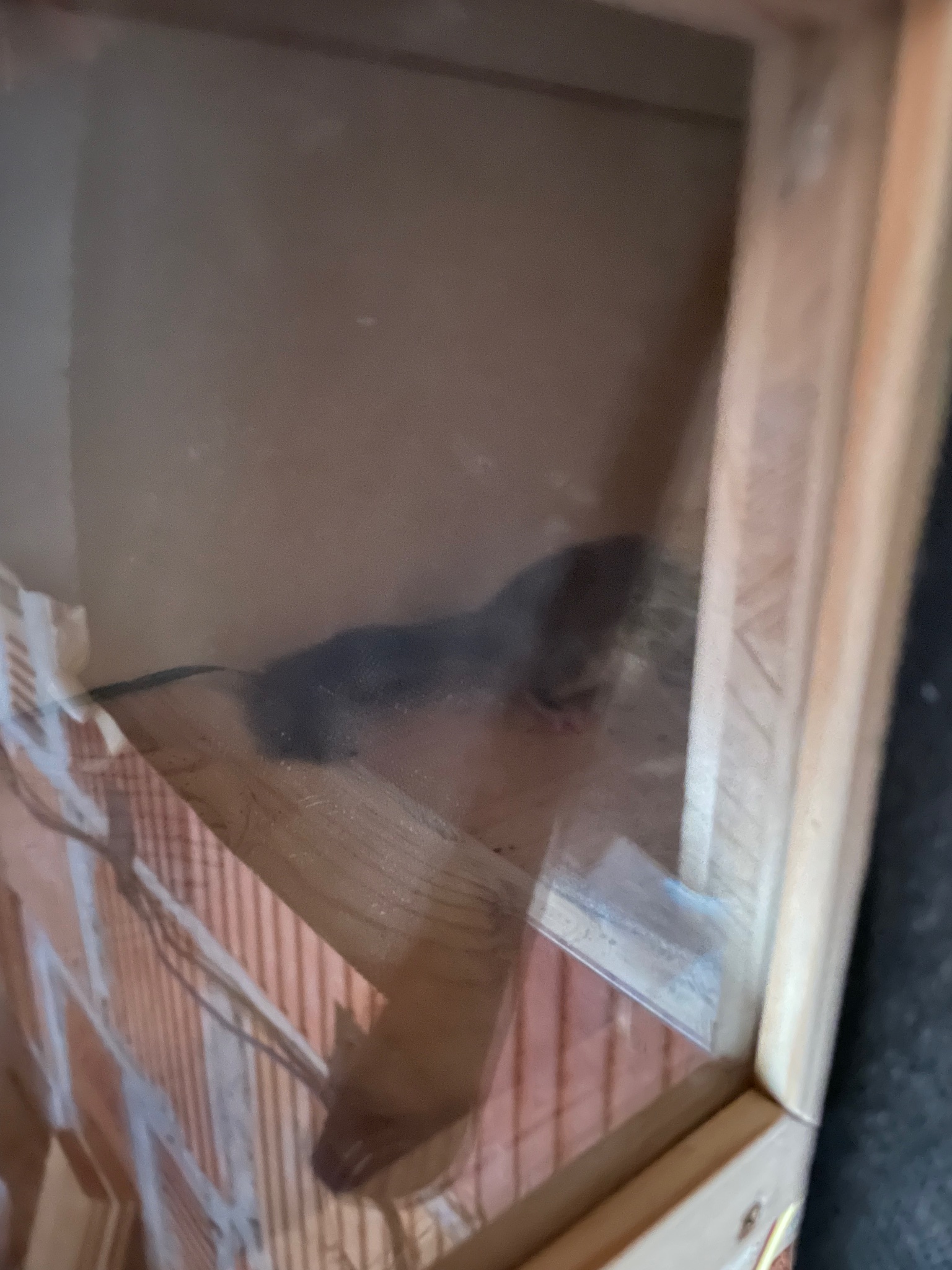 als ich gestern auf dem Dachboden nach der Spätbrut schauen wollte , bemerkte ich im Kasten darunter, bei schlechten Lichtverhältnissen, das darin etwas war .
