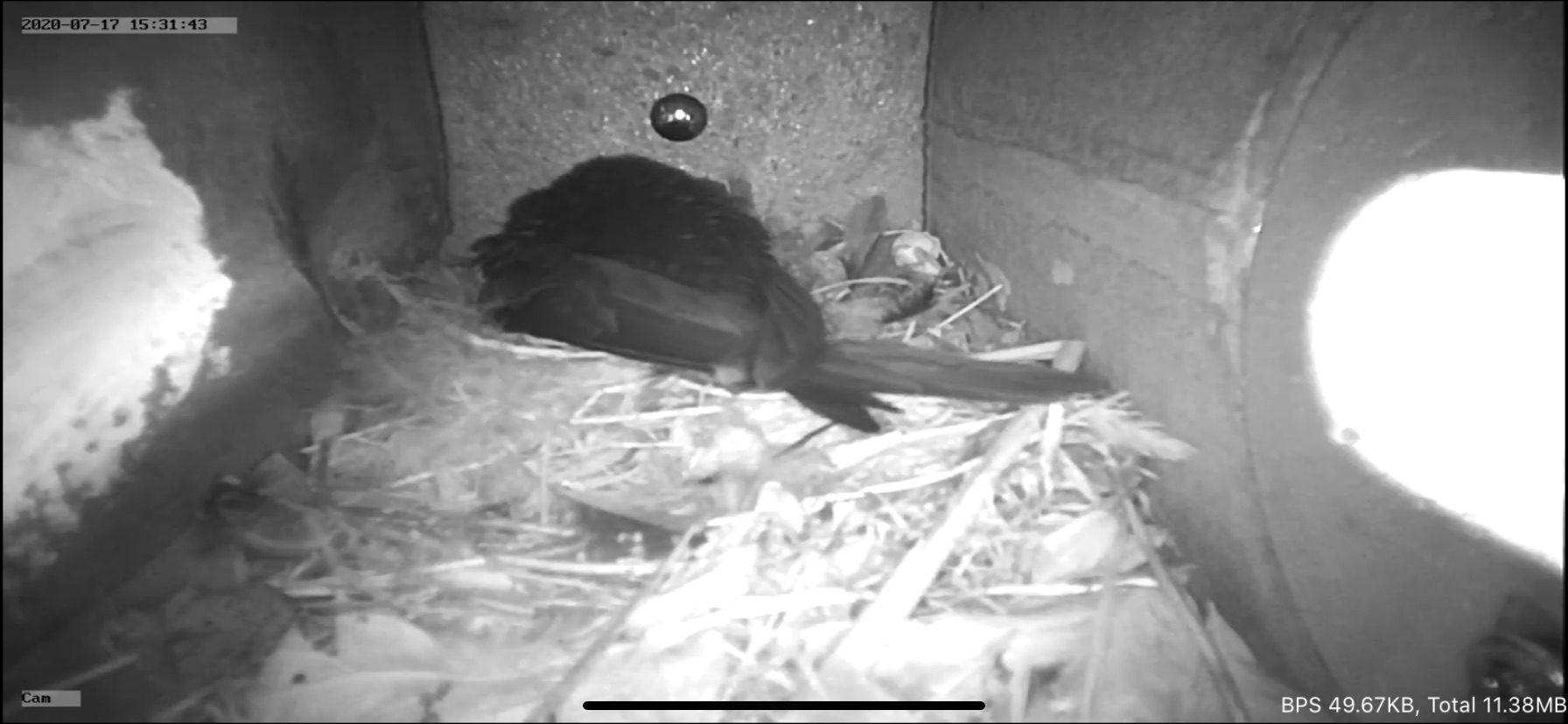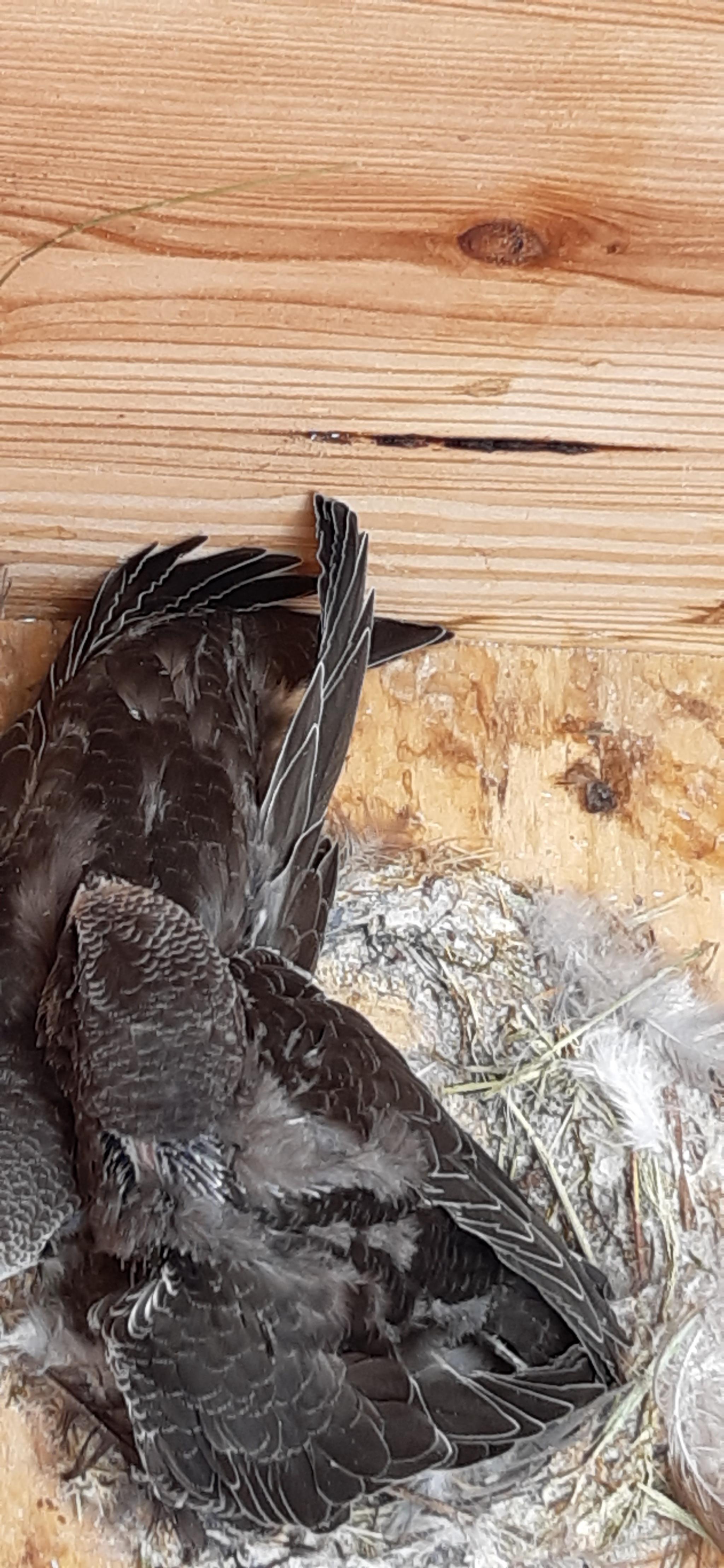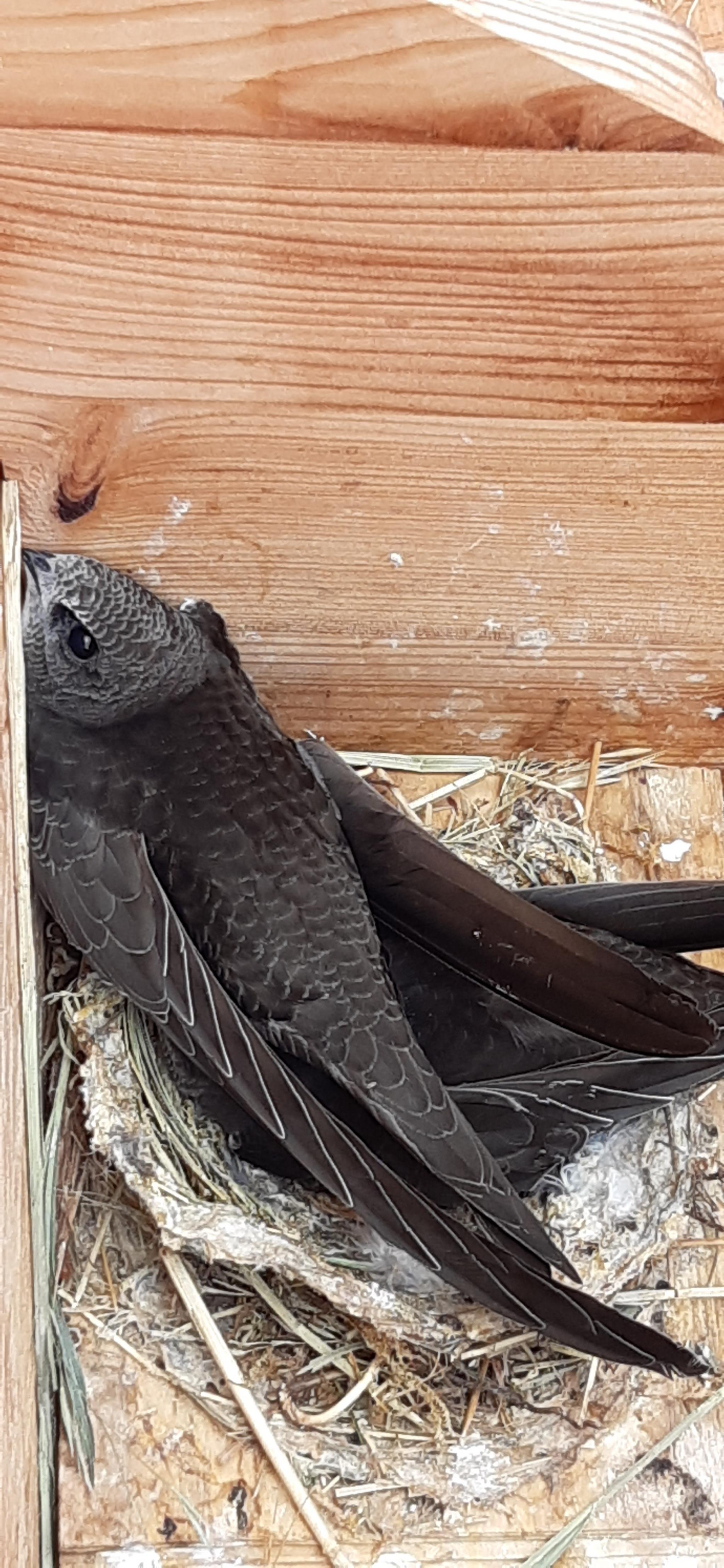 Inzwischen sind die ersten 2 Mauersegler dieser Saison ausgeflogen. Von ursprünglich 3 Eiern immerhin zwei Jungsegler auf dem Weg nach Afrika.