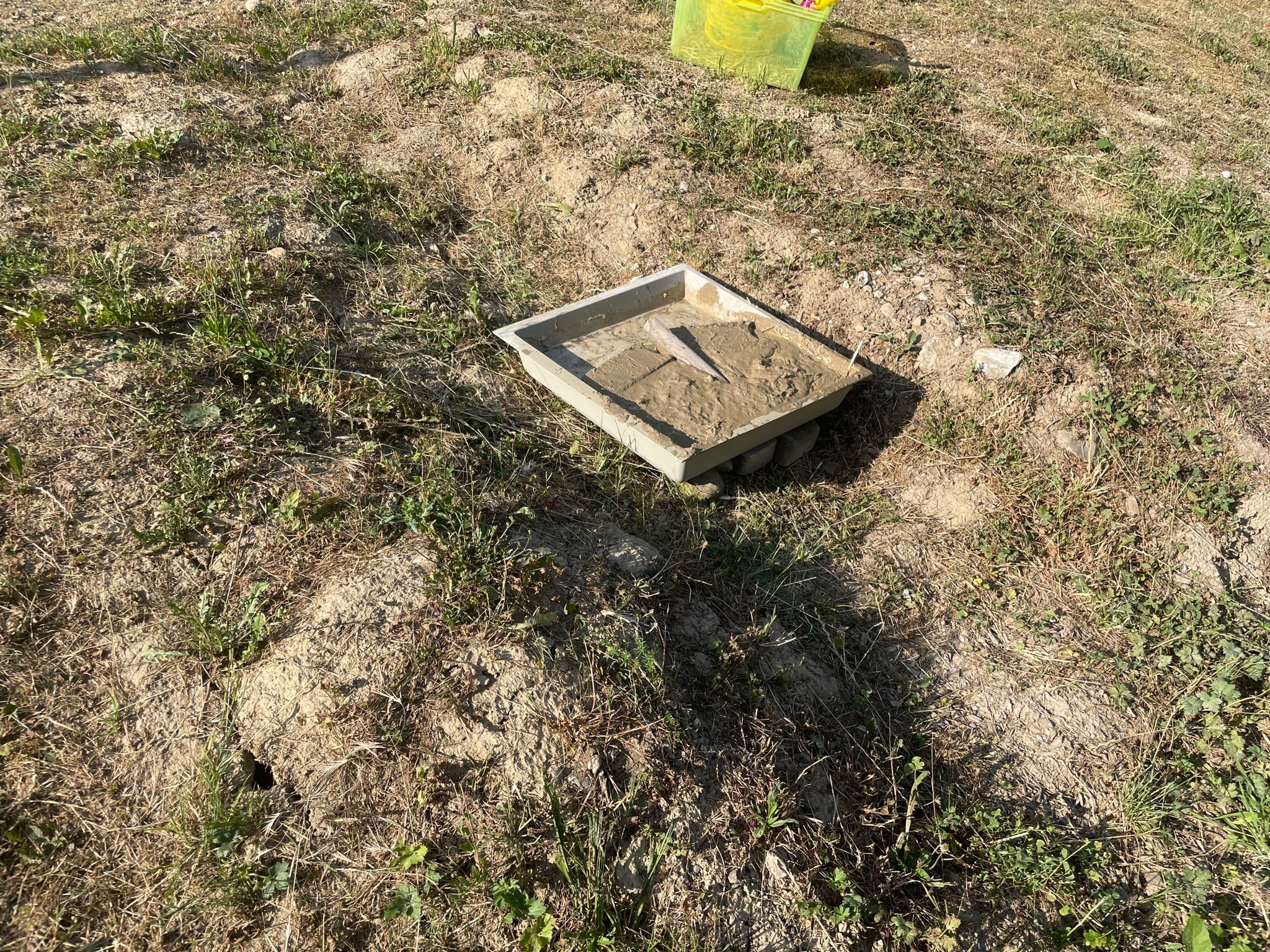 Mal schauen ob ich Schlamm finde, und ob ich das dort wo Platzieren darf. Hoffe dass sie mich unterstützen um die Pfütze auch feucht zu halten.