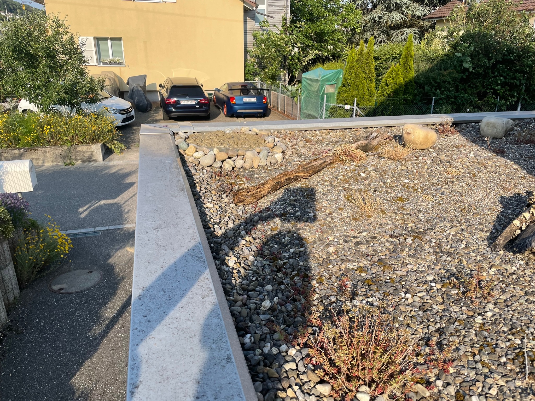 Hab Heute bei mir auf dem Garagendach noch eine kleine Pfütze angelegt. Diesmal aber nur Lehm benutz und ein bisschen tauschiert damit man die Wanne nicht sieht.