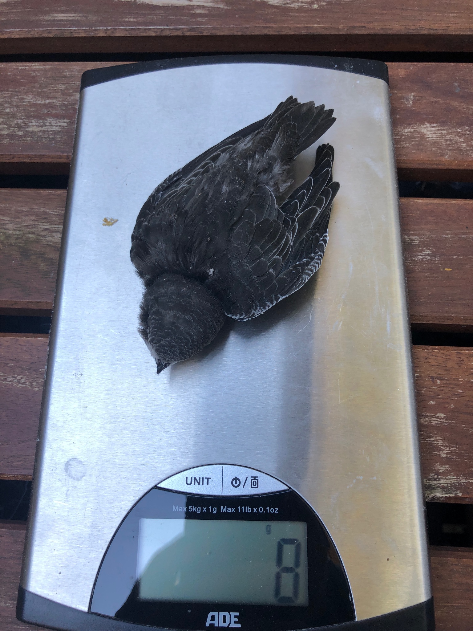 8g wären allerdings sehr unrealistisch (da stimmt was mit der Waage nicht). Der Tod durch Verhungern kann bereits bei unter 30g eintreten, manche extremen Kämpfer sterben erst bei knapp unter 20g. In diesem Bereich müsste auch ein verhungerter Jungsegler liegen. Normal wären 40-50g.
