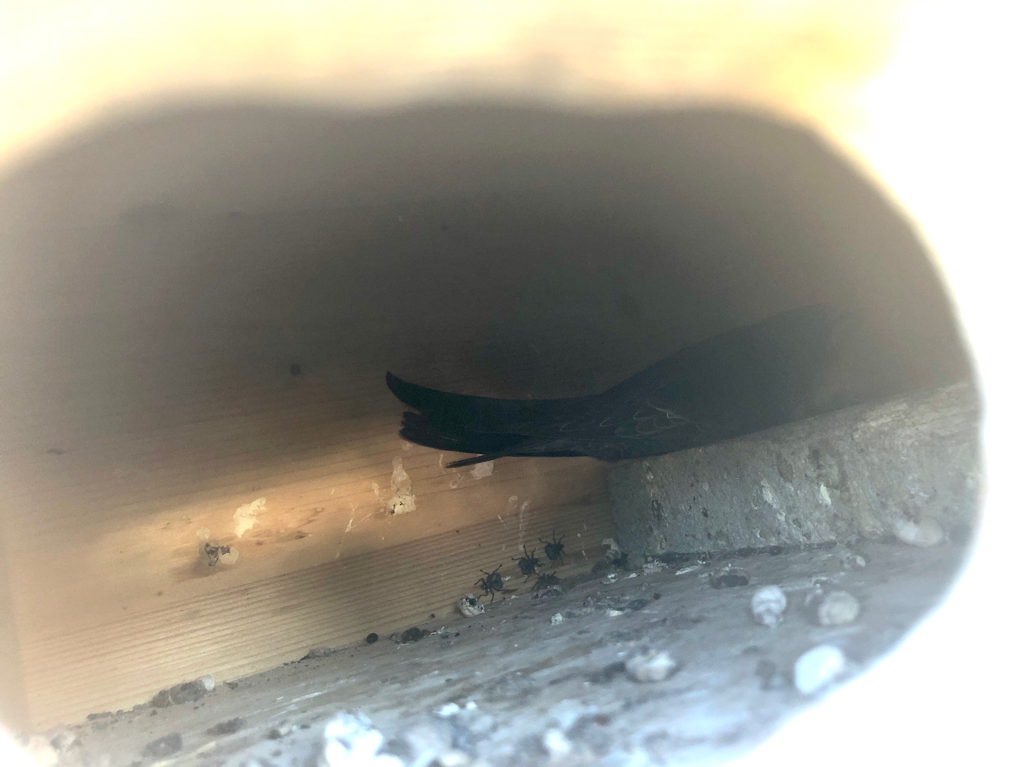 Eine Frage zum ersten Foto im Nistkasten: Seid ihr wirklich sicher, dass der Segler, der in die Kamera blickt, wirklich ein Jungvogel ist? Mir scheint das Gesicht zu dunkel (das kann natürlich auch an der schlechten Beleuchtung liegen). Das würde dann nochmal ein ganz anderes Licht auf die traurige Geschichte und mögliche Ursachen werfen, würde aber auch bedeuten, das JV Nr. 2 schon erfolgreich ausgeflogen sein könnte.