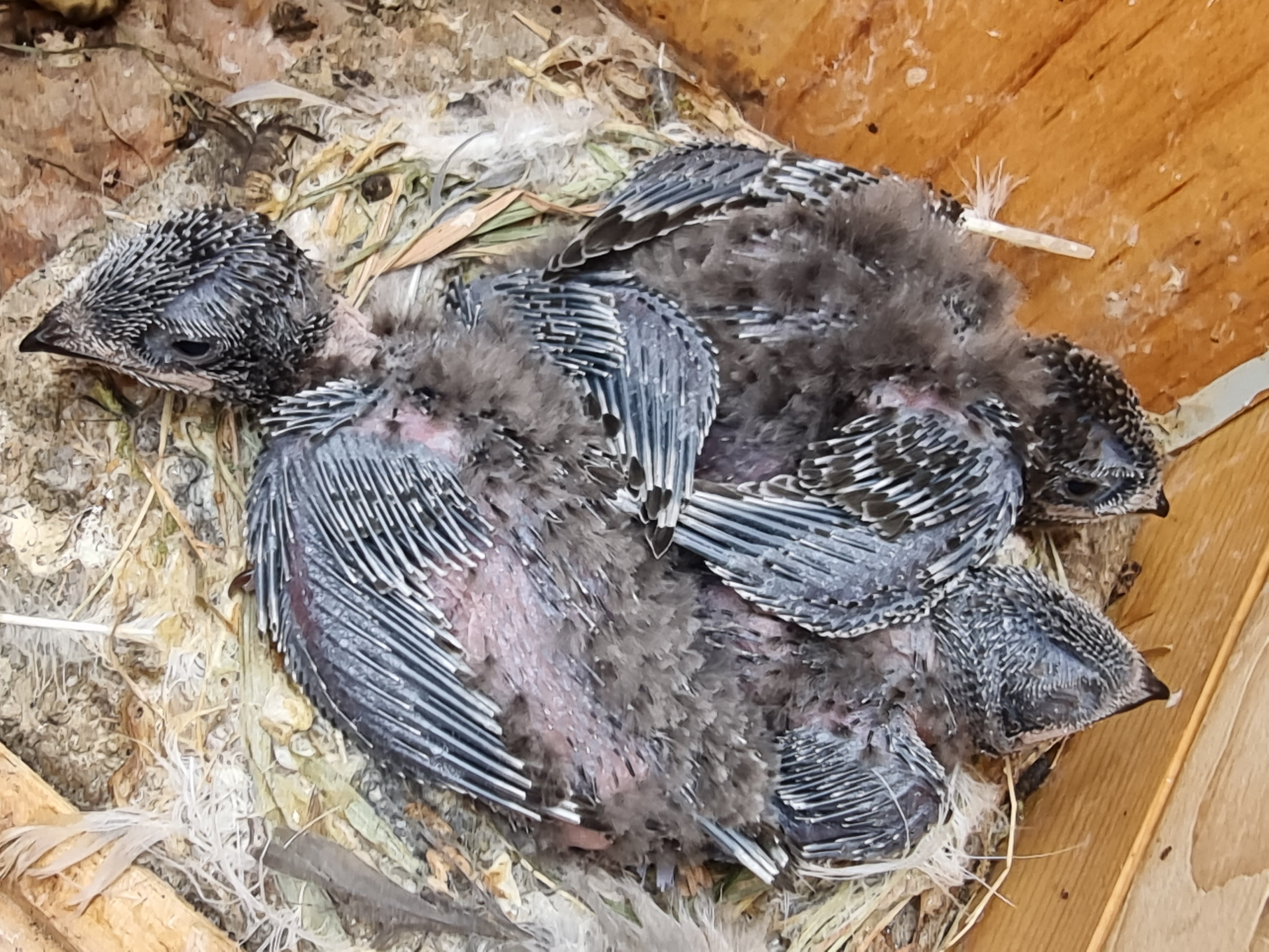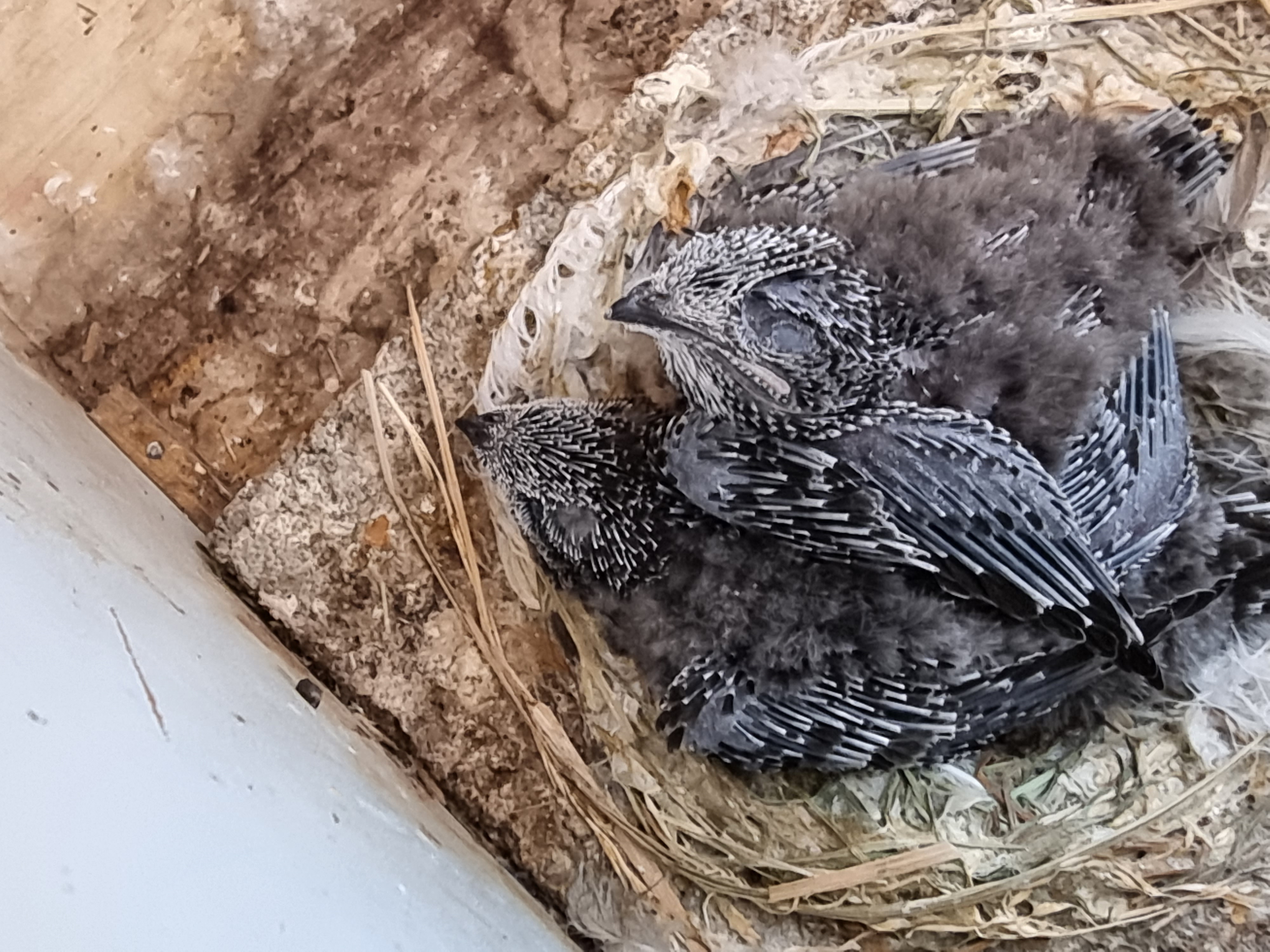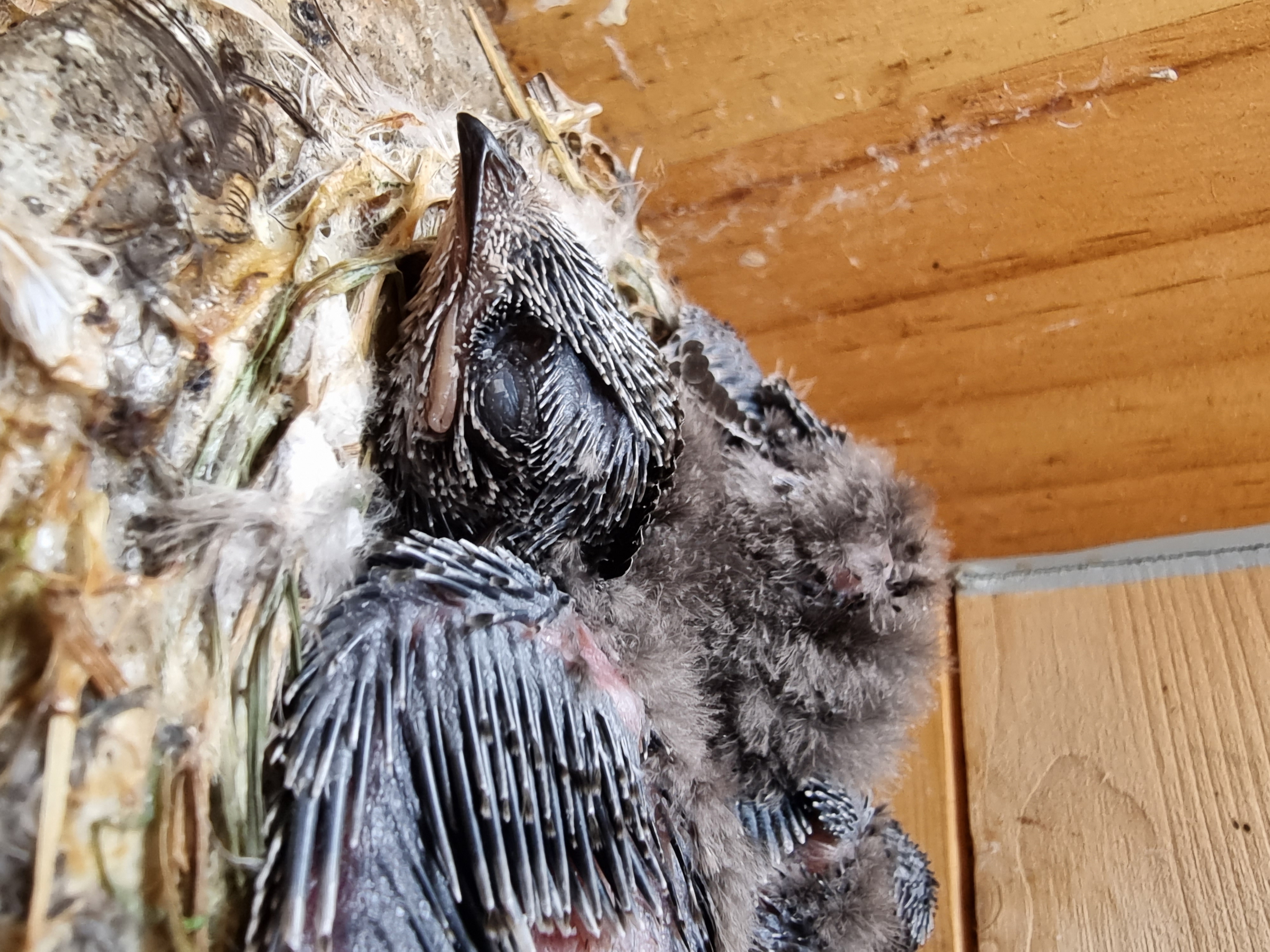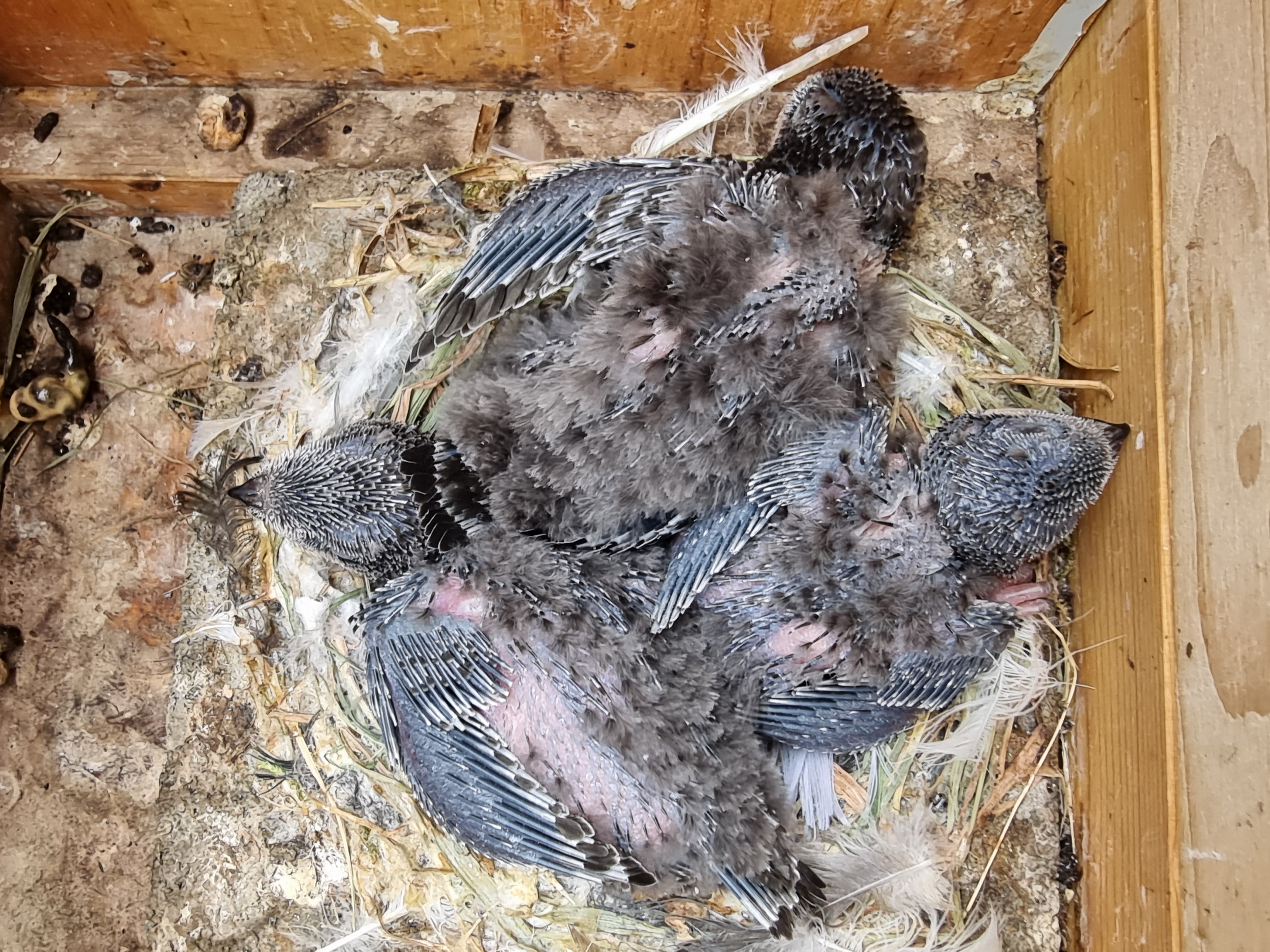 Ich lass die dann gewähren. Hier hat auch ein Star einen Kasten übernommen, die Segler mussten sich gedulden bis die Brut hoch war. Für den Star war die Aufzucht Stress pur!