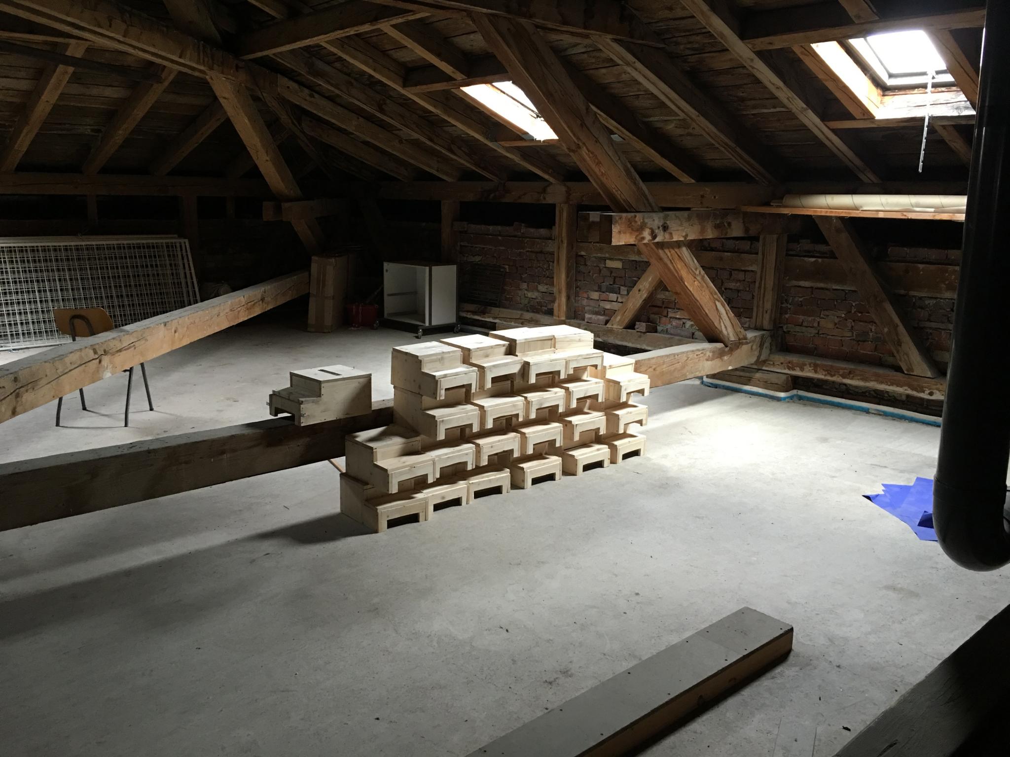 Hier noch ein Bild vom Dachgeschoß bei der ersten Aufstockung aus dem Jahr 2017 auf 35 Kästen.