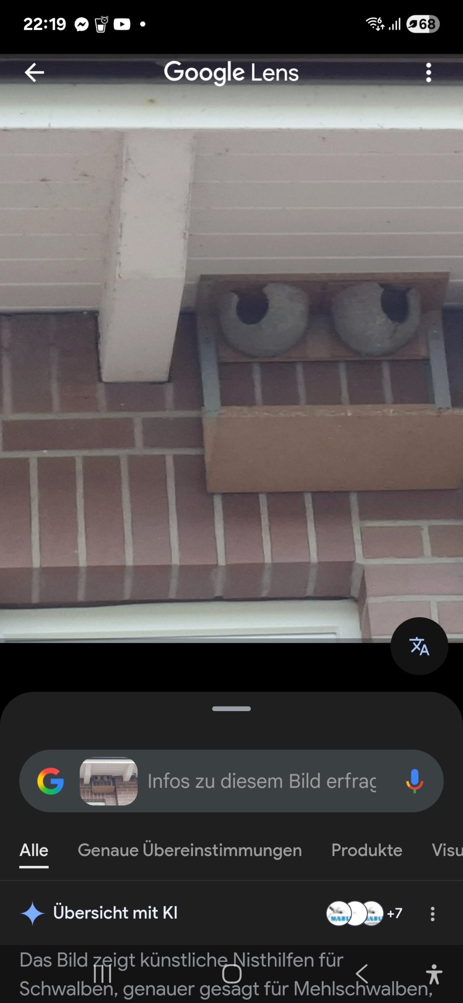 Dein Bild wurde ja von der KI scheinbar erkannt. Ich gehe mal davon aus, dass die Mehlschwalben auf dem Campingplatz gar keine Eier legen, sondern einfach schwanger werden. Da brauchen die Nester schon so große Öffnungen, damit sich die Ungeborenen beim Einfliegen der Mutter nicht aus Versehen verletzen können.
