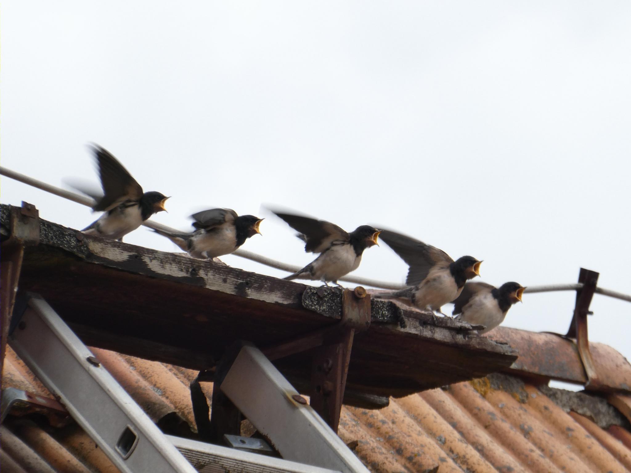 Schwalben werden im Hof gefüttert