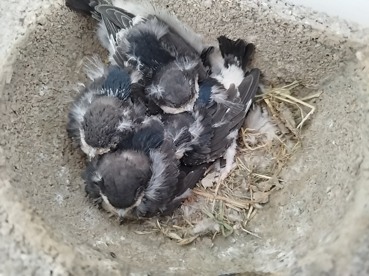 Nach 4-5 herausgeschmissenen Eiern der Mehlschwalben, haben sie es jetzt noch einmal erfolgreich geschafft.