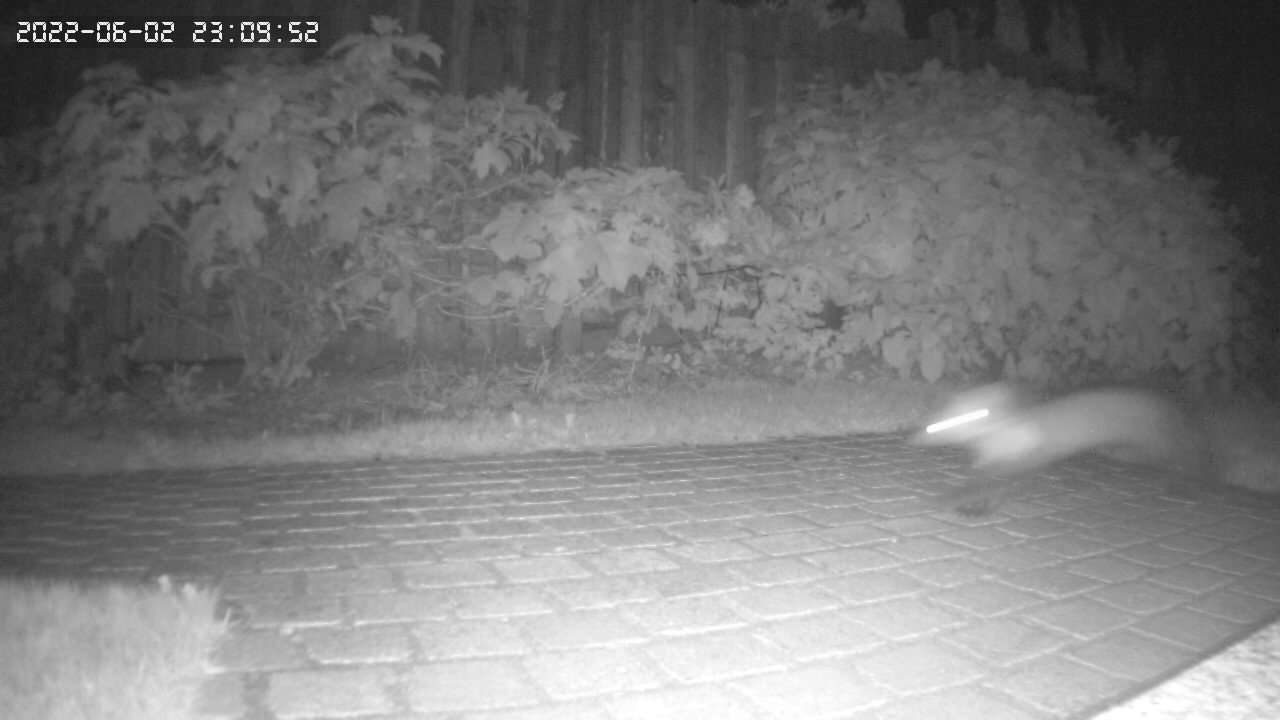 nach der nächtlichen Störung meines BP durch einen auf den Balkon heraufgekletterten Störenfried wollte ich nun doch mal genauer wissen, wer sich alles nachts im Garten herumtreibt. Hier das Ergebnis der Überwachungskamera, die ich in zwei Nächten draußen aufgestellt hatte – 1 x beim Hauseingang und 1 x an der Terrasse neben der Kletterhortensie.