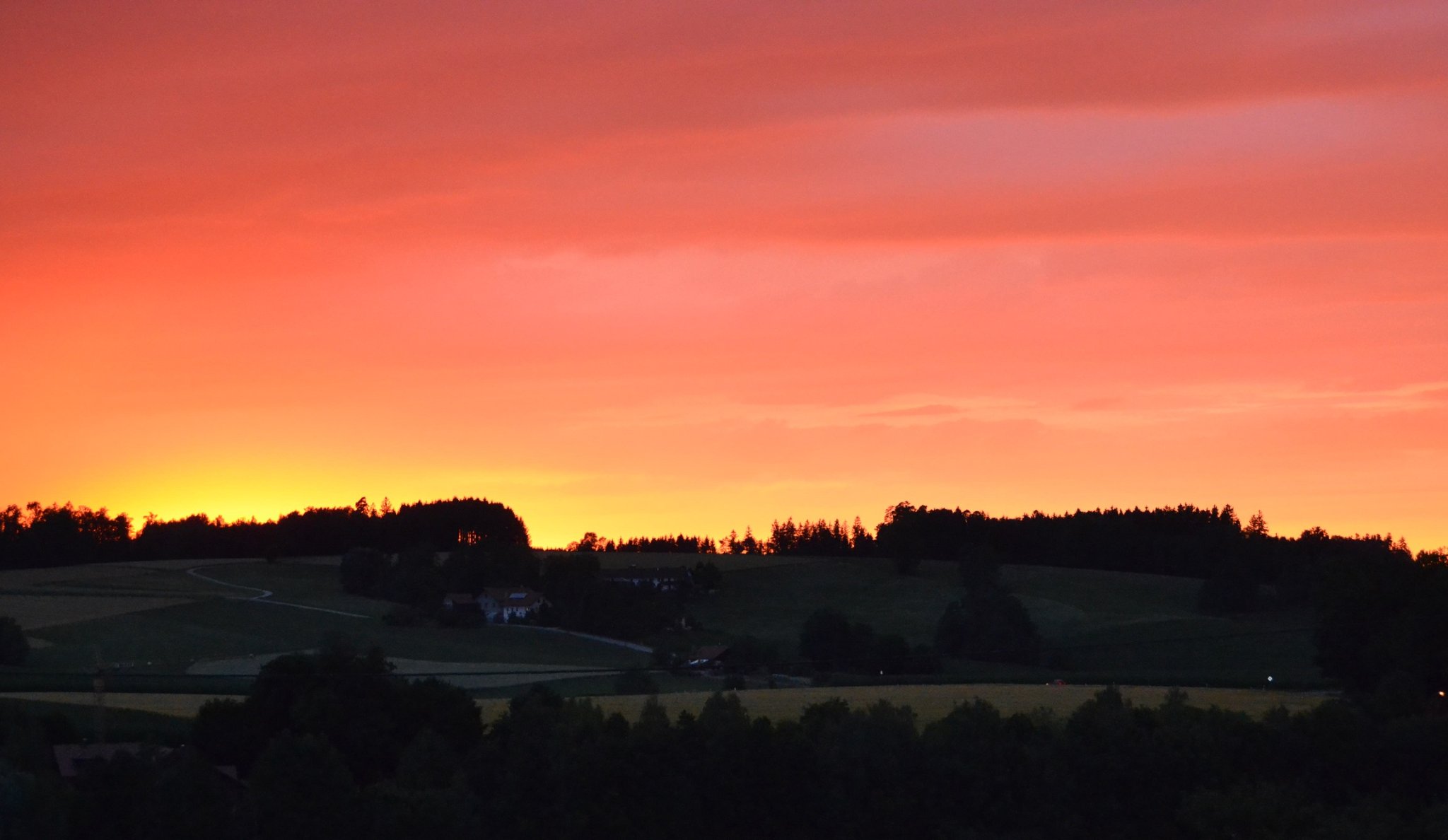 gestern Abend gab es hier einen fantastischen Sonnenuntergang, der ganze Himmel erstrahlte in herrlichen Rot-Tönen. Diesen wunderschönen Anblick habe ich vom Balkon aus fotografiert, aber es kommt auf dem Foto nicht ganz so rüber wie in Wirklichkeit. Ein paar fliegende MS wären noch das Tüpfelchen auf dem "i" gewesen, aber die waren alle schon in ihren Nestern. Das Foto habe ich mit "Paint" nur auf 50% verkleinert und unten die Satellitenschüssel vom Nachbarhaus abgeschnitten - die Farbe ist jedoch unbearbeitet. Ein paar Stunden später zog ein kräftiges Gewitter auf mit Starkregen, der so aussah, als würde alles mit einem Hochdruckreiniger abgestrahlt. Zum Glück ohne Hagel und - zumindest bei uns am Haus - keine Überschwemmung. Die draußen parkenden Autos sind jetzt sauber wie nach einem Besuch in der Waschanlage