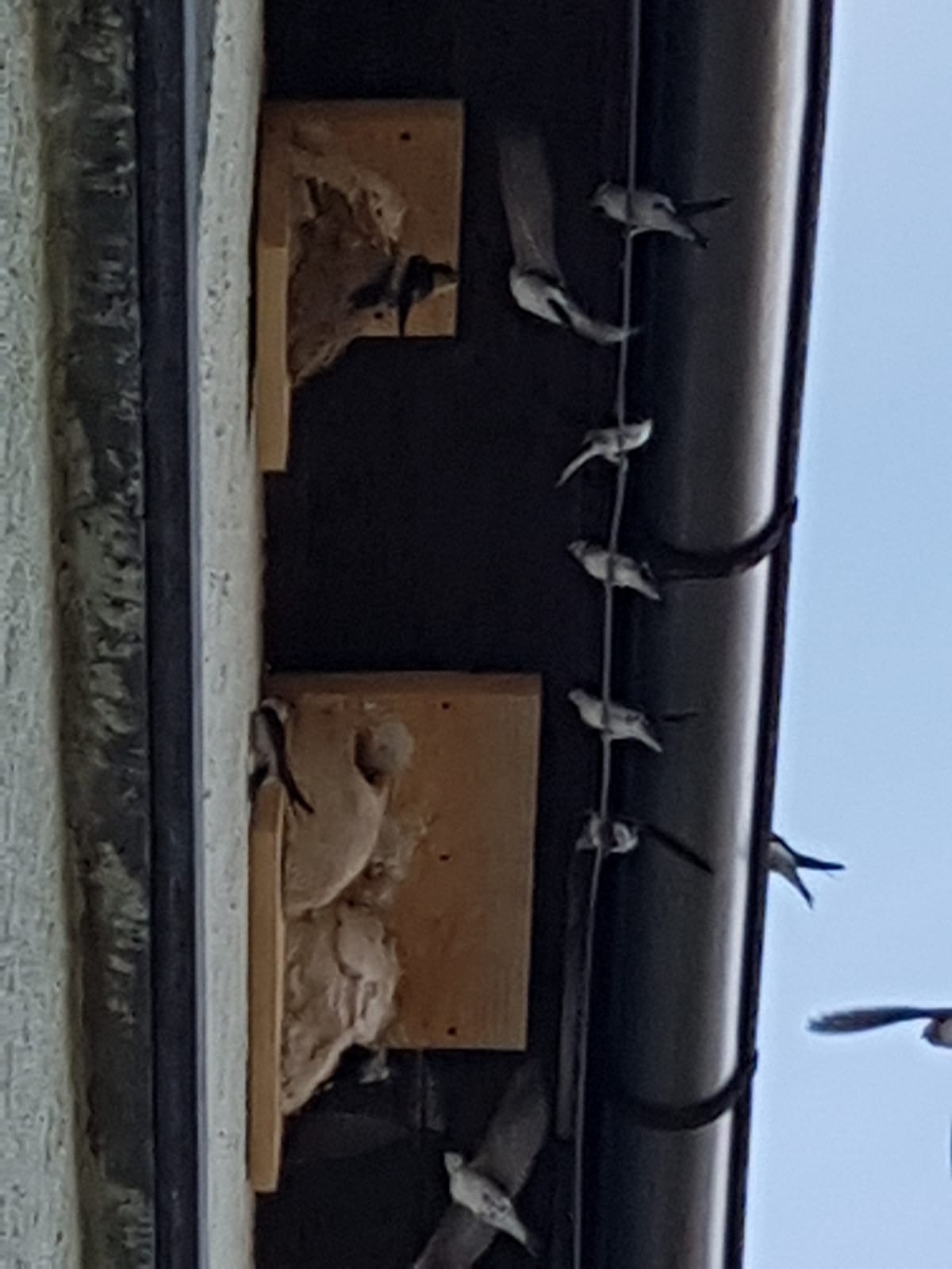Es hing ein Mauersegler mal so an der Nisthilfe als die Mehlschwalbe gerade brütete.