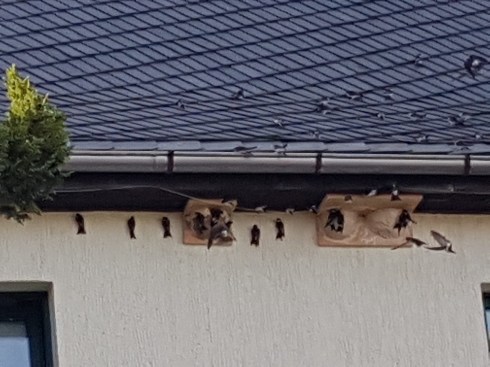 Konnte ich bei mir dieses Jahr so leider nicht beobachten. ;) Es hat immer Schwalben die in der näheren Umgebung nach Insekten suchen und bei den Kunstnester vorbeifliegen.
