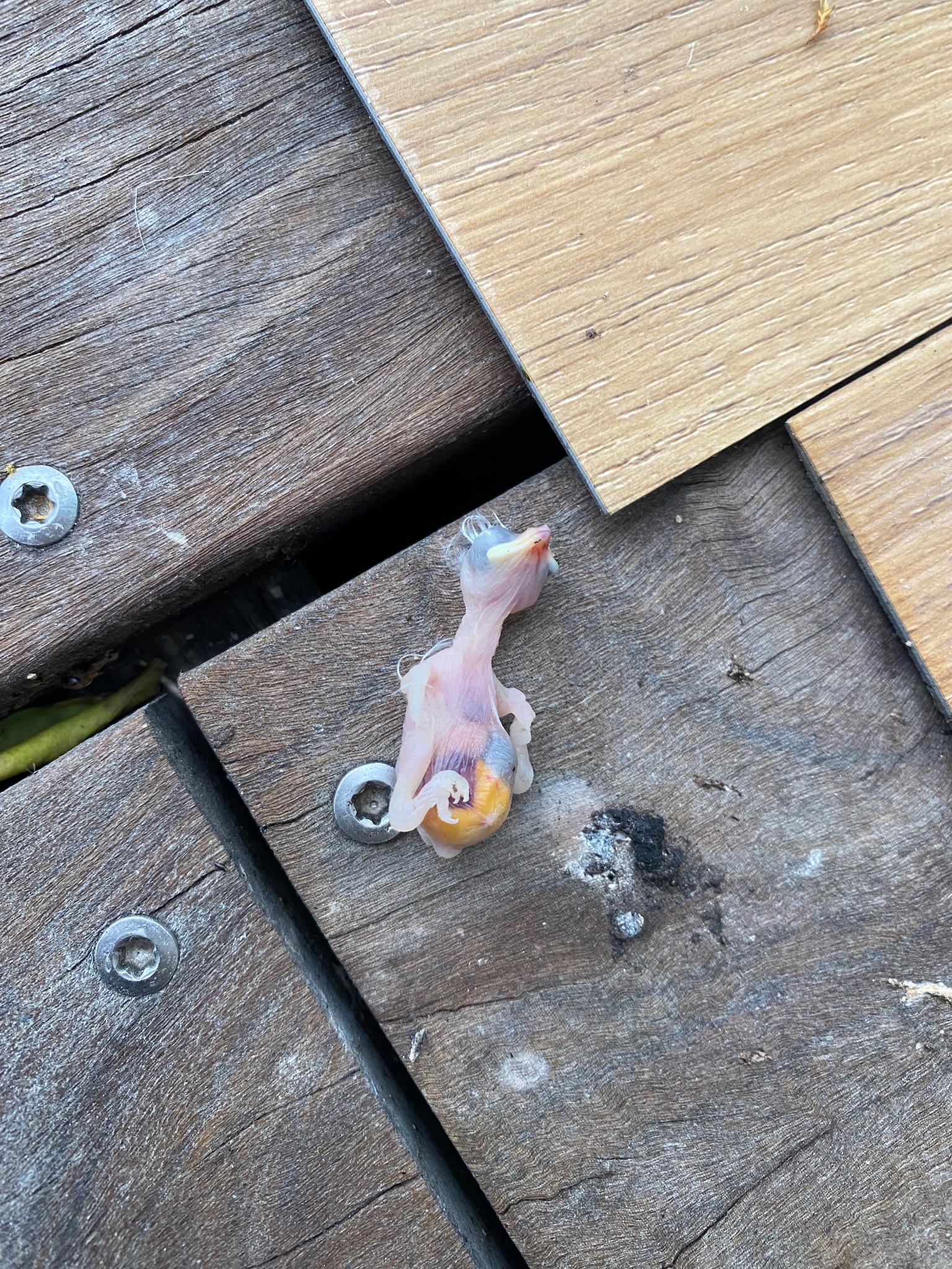Heute Morgen lag dann das 2. Küken tot unter dem Nest. Eindeutig kalt und tot. Also von den 3 Eiern der 2. Brut sind bereits 2 Küken tot.