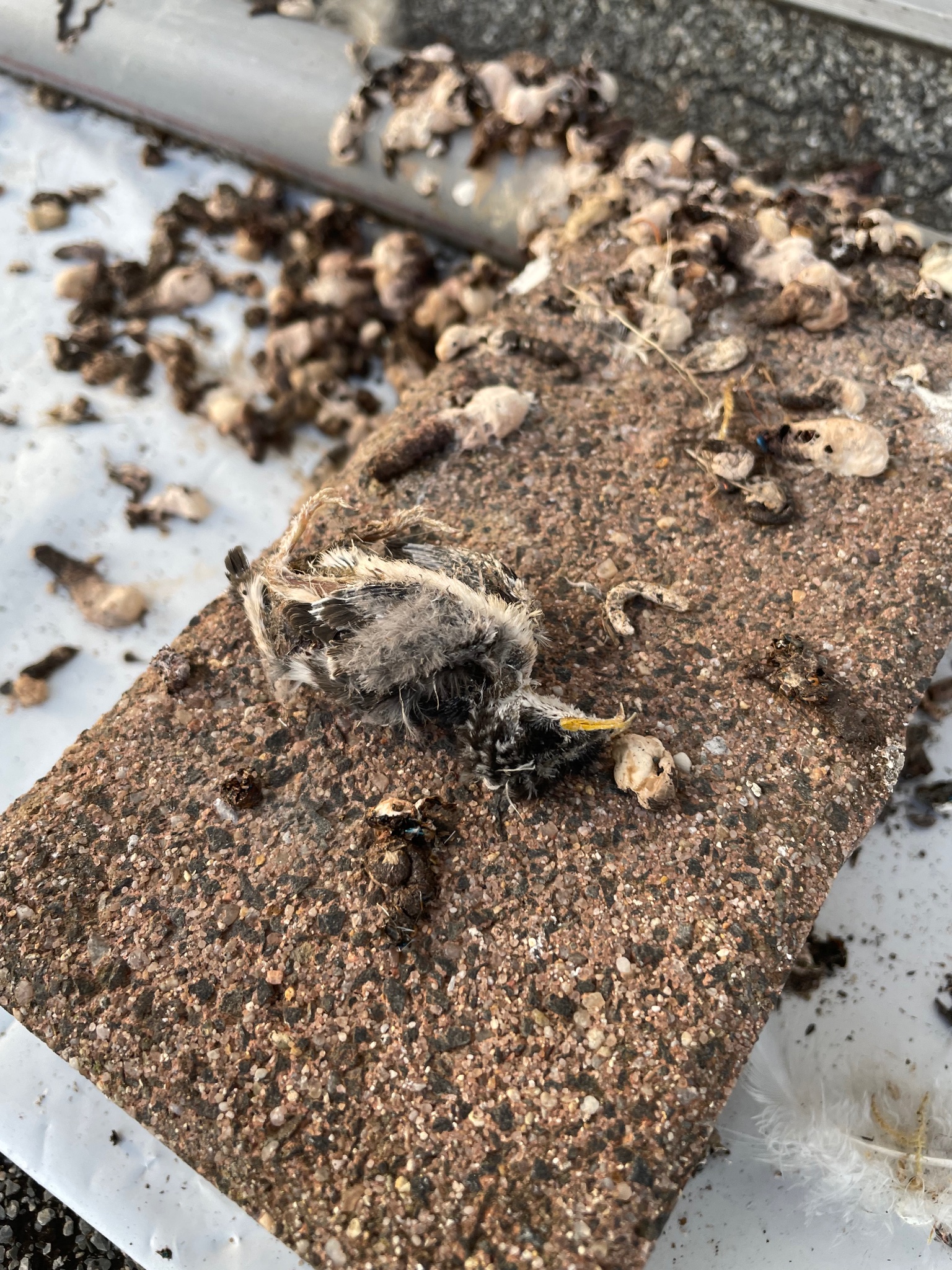 In der 2. Brut meiner Mehlschwalben wurde ein Küken 🐣 herausbefördert. Das Gelege umfasste 3 Eier.