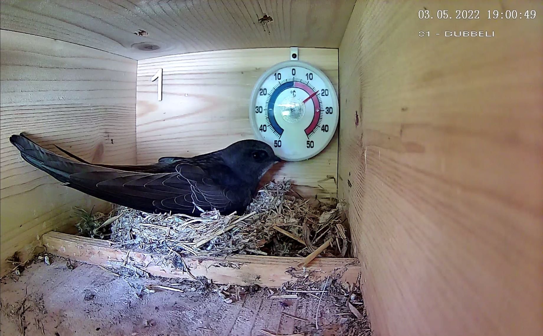 Am Abend konnte ich nur einen Segler beim Einflug ,um ca 19.30 ,beobachten. Er flog nicht in den Kasten von gestern ein.Vielleicht war aber auch schon einer vorher eingeflogen ?