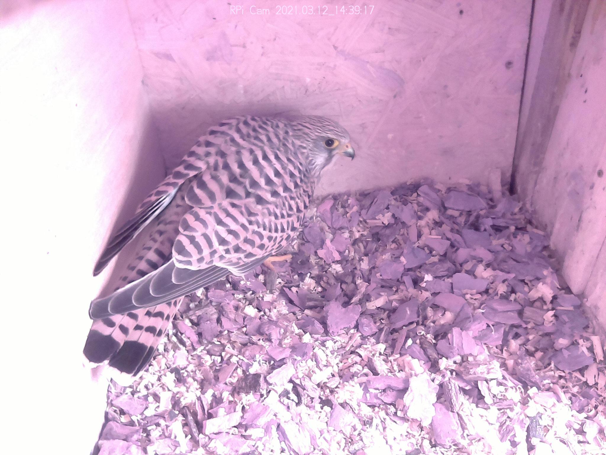 Der Brutkasten ca. 1,5 km von mir entfernt, ist aber bereits wieder besetzt. Ich konnte ein Weibchen vor dem Eingang sitzen sehen.