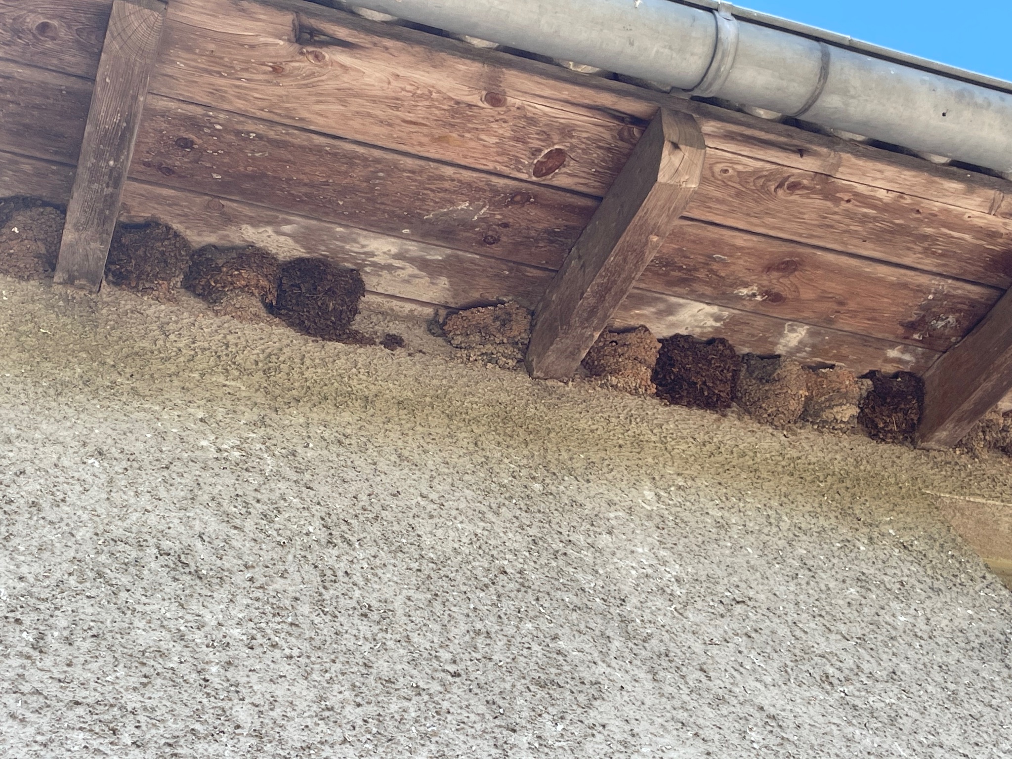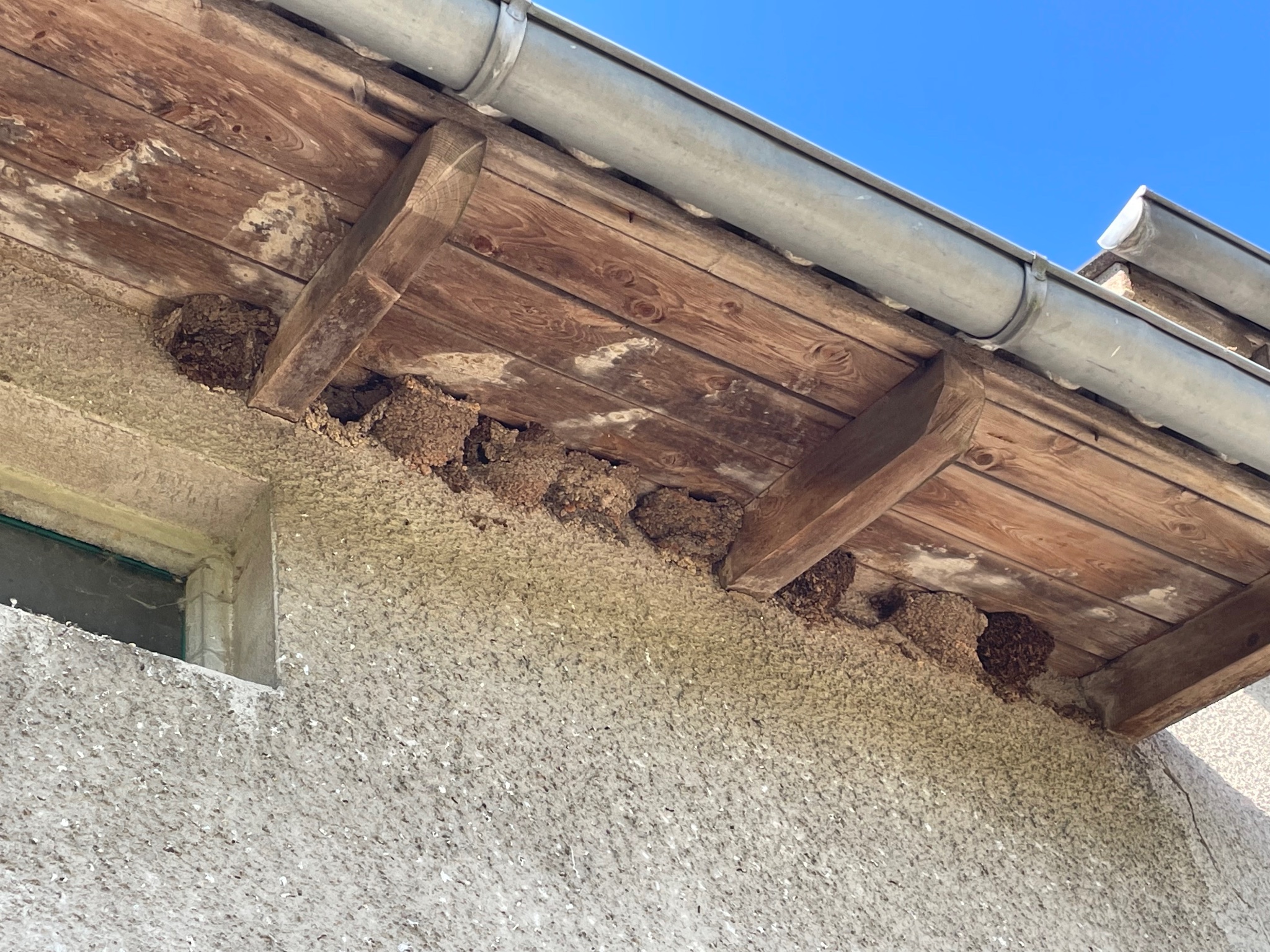 Unter dem Dachüberstand des Wirtschaftsgebäudes reihte sich ein Mehlschwalbennest an das Andere.