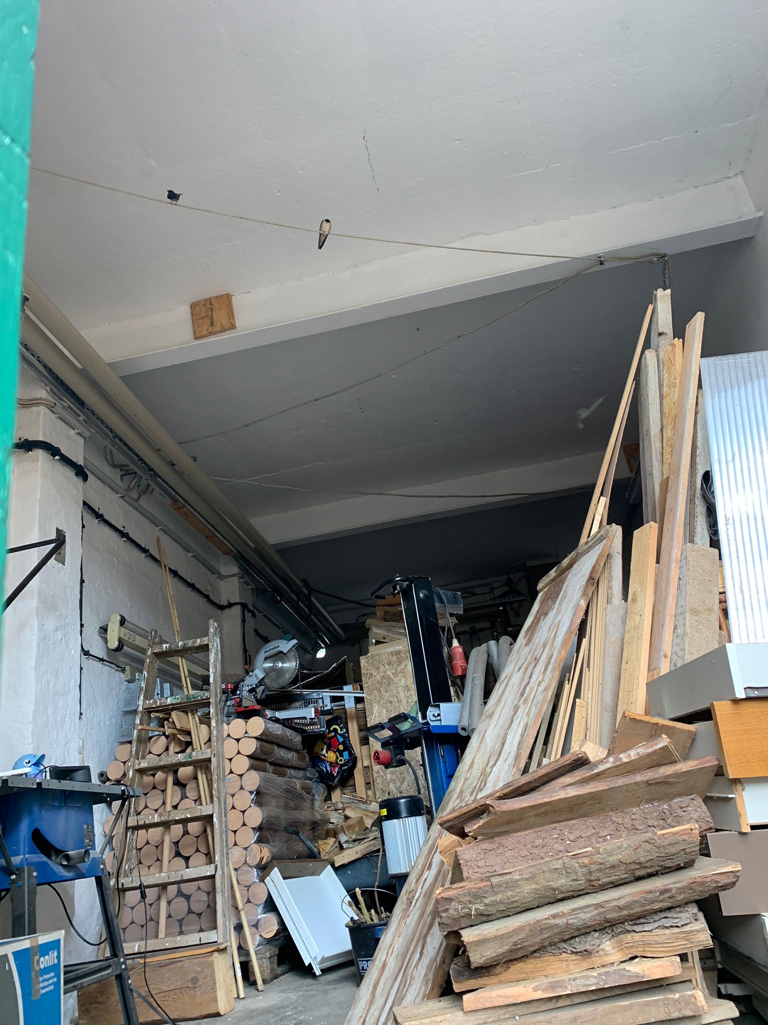 Ganz heimlich, von mir unbemerkt hat der Werkstatt-Mann #1 wohl eine neue Partnerin (oder ist es doch die alte???) gefunden und ein Nest gebaut... auf ein paar Rauspundlatten, die ich im Frühjahr an die Wand gelehnt hatte, weil sie eigentlich auf den Dachboden sollten (Dachluke (verschlossen!) mit Leiter ist direkt daneben).