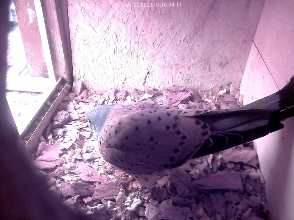 Wenn ihr die Zeit und Muse habt, schaut mal auf die Gefiederzeichnung der Männchen (im letzten Beitrag), habe Unterschiede festgestellt und tatsächlich 3 Turmfalken hier am Haus ausgemacht. Die Männchen müssen ihrer Dame einen Nistplatz ausfindig machen, bevor Nachkommenschaft gezeugt wird.