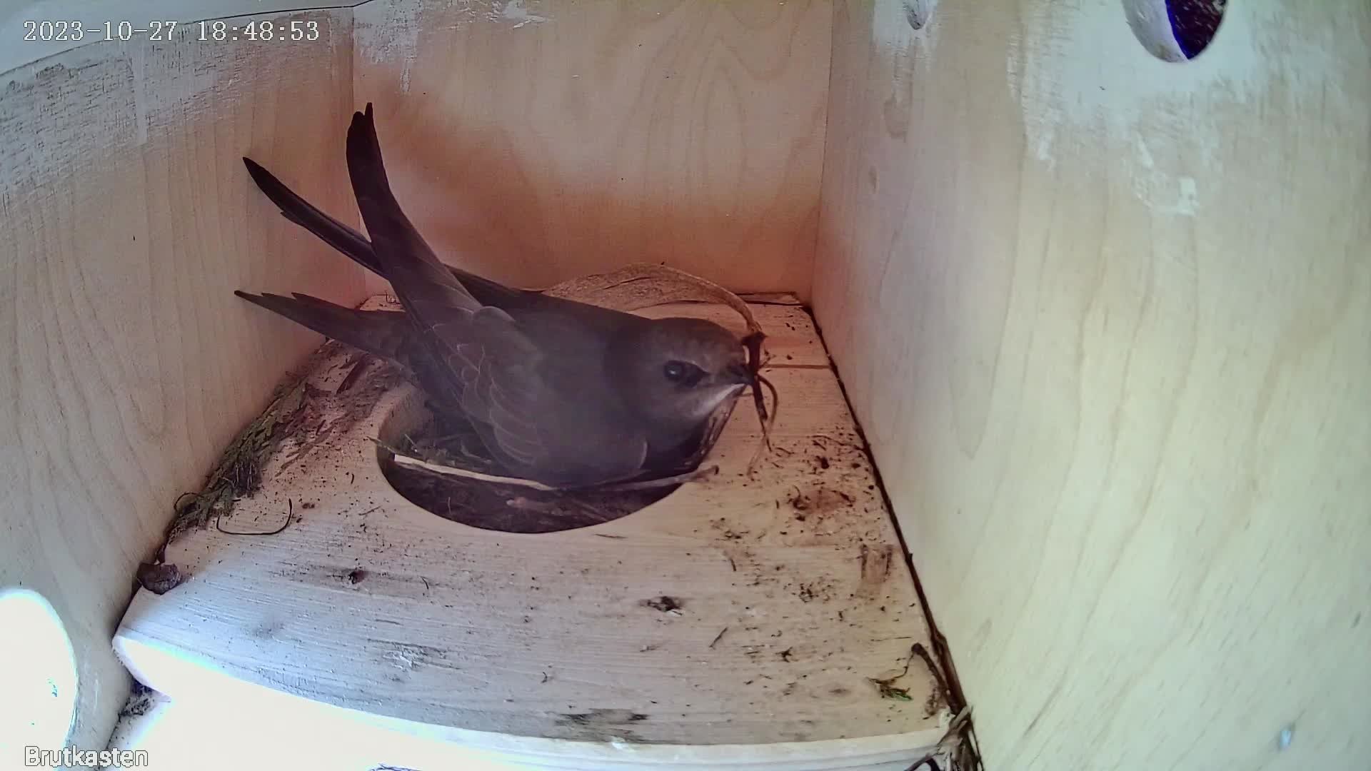 Heute Abend habe ich einen davon beobachten können wie er in das Nest einflog - leider habe ich dort keine Kamera anbringen können.