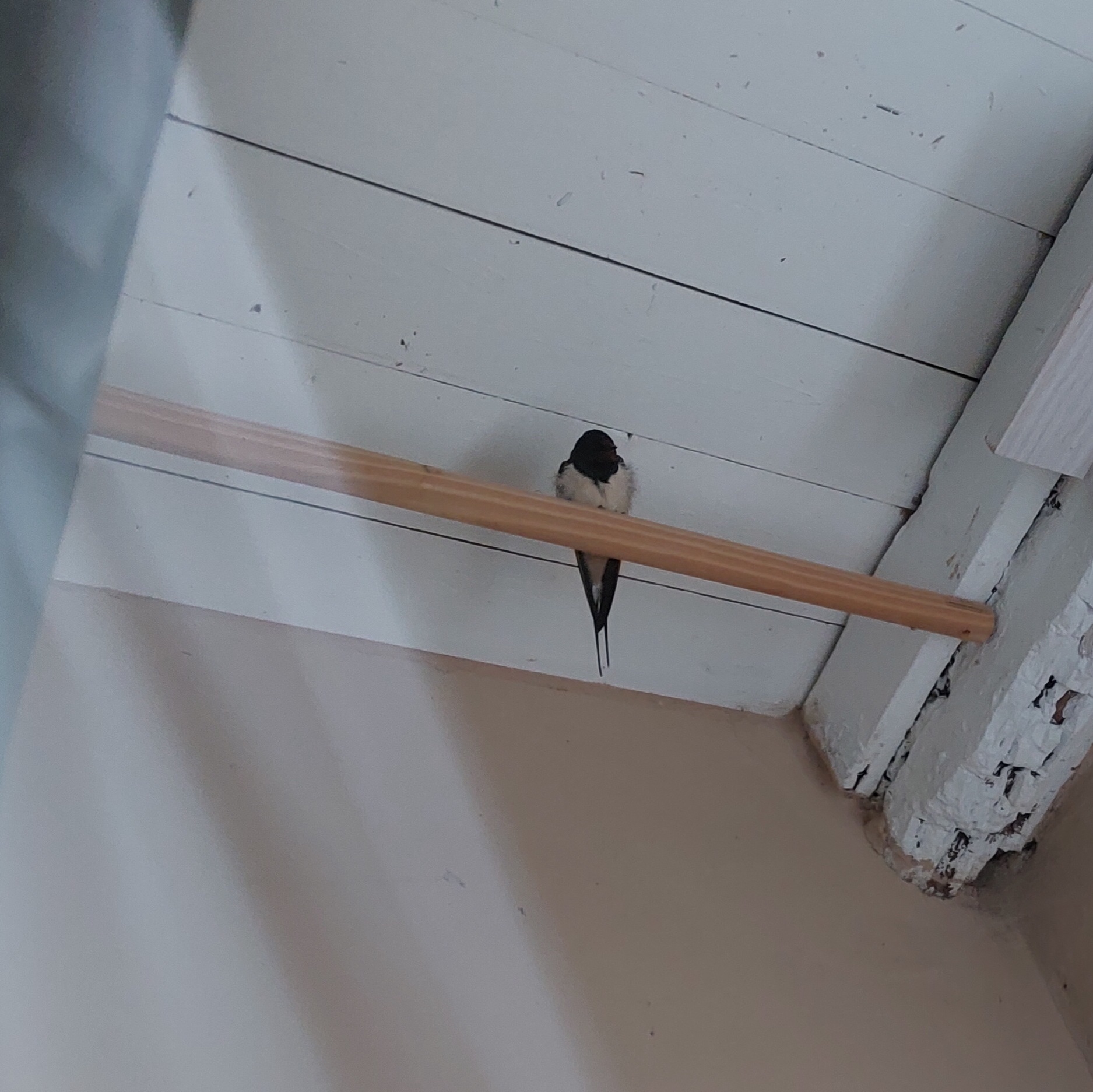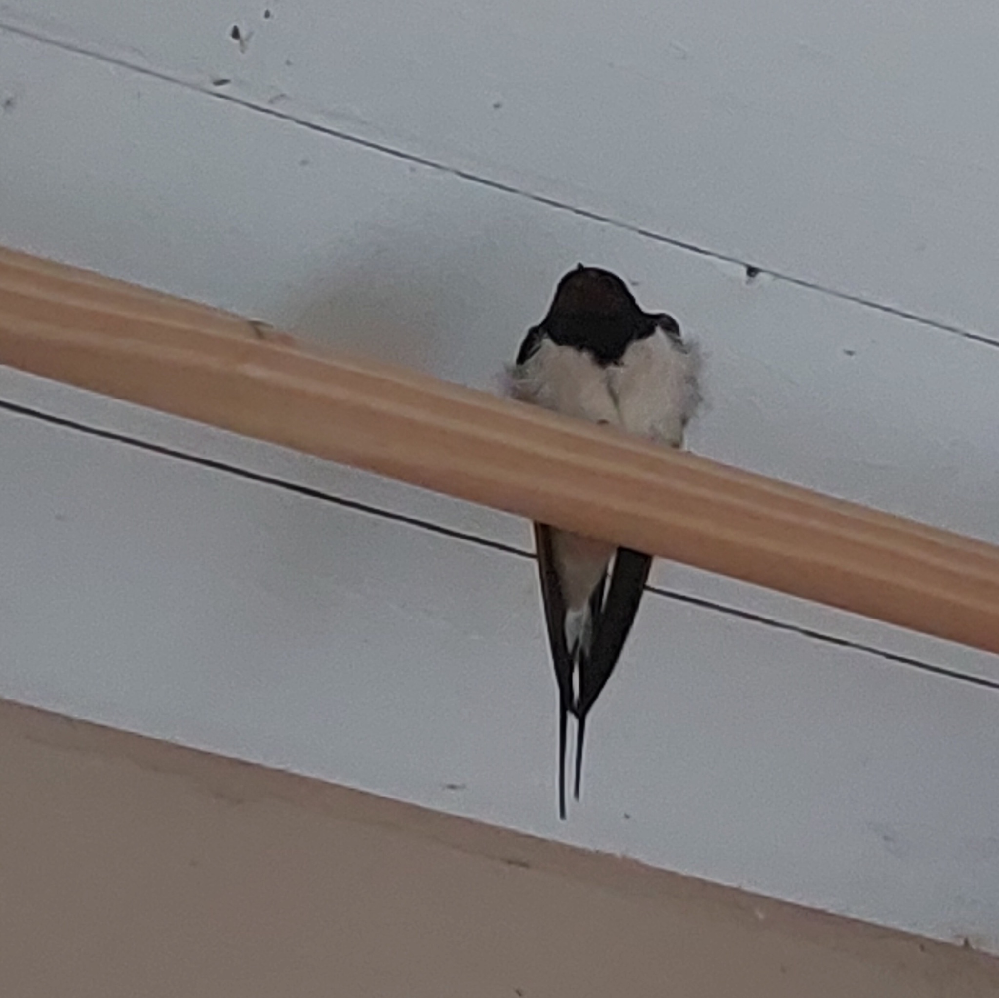 Bevor er heute morgen ausflog hat er eine ganze Weile gezwitschert, als würde er ein Weiberl anlocken wollen. Nur habe ich hier noch keine weiteren Schwalben gesehen.