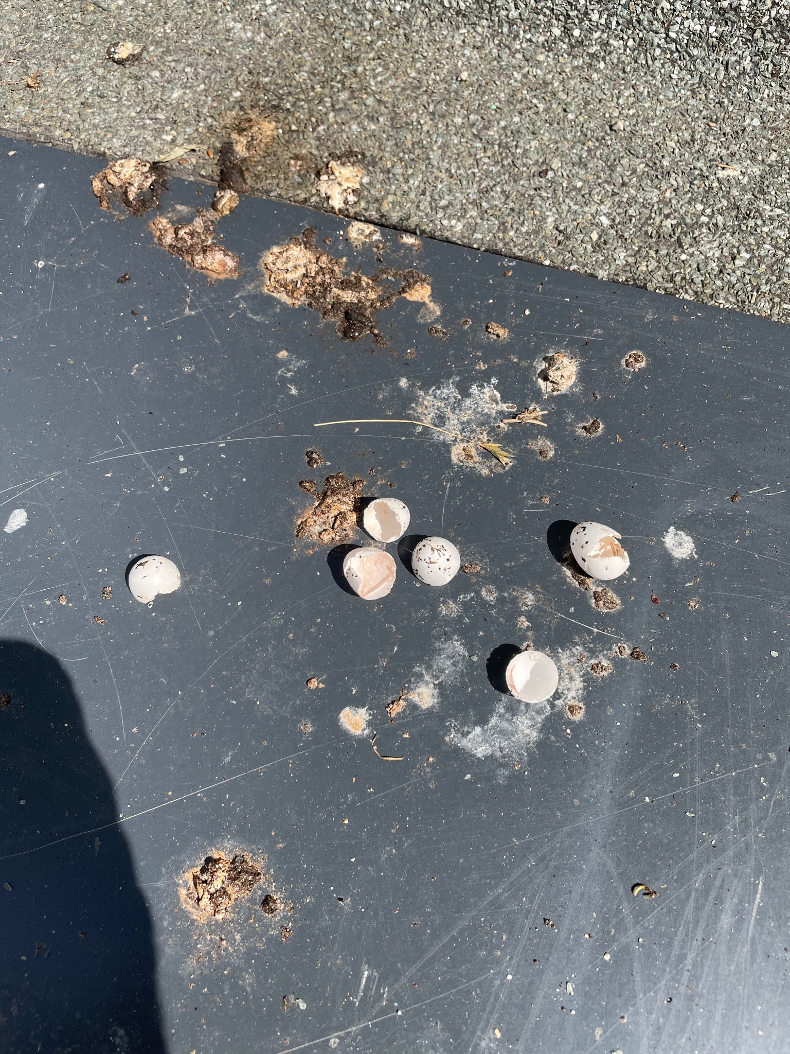 Heute nun habe ich auch die erste Eierschalenhälfte auf dem Balkon entdeckt.