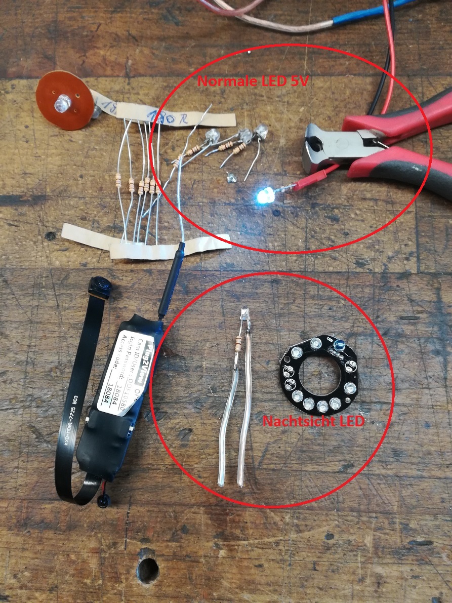 Nun Habe ich aus einer defekten Überwachungskamera den INfrarot (Nachtsicht) LED Spot ausgebaut und daraus eine einzelne IR LED in Funktion gesetzt.