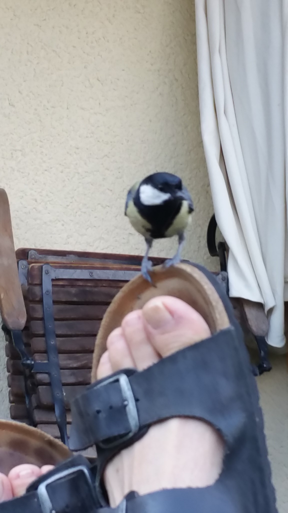 Kohlmeise auf Hausschlappen