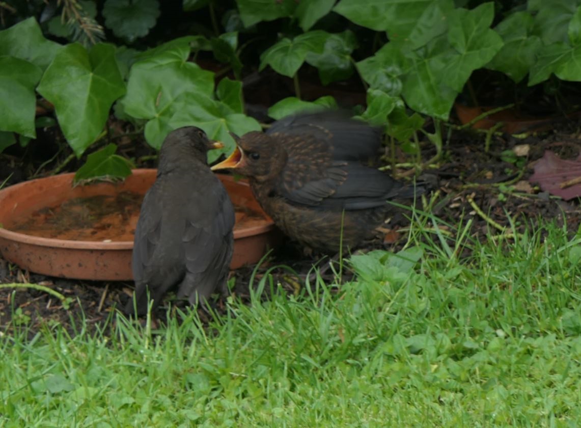 auch ich konnte heute in unserem Garten die Fütterung von Jungamseln beobachten.