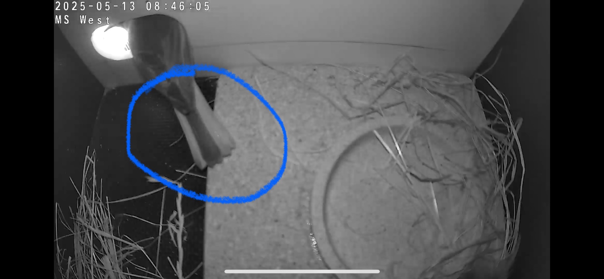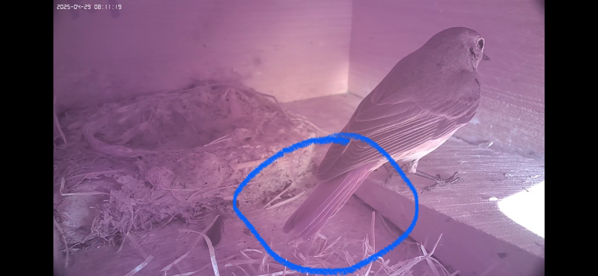 Heute hat das Weibchen damit begonnen Nistmaterial in das alte Nest für das zweite Gelege einzutragen.