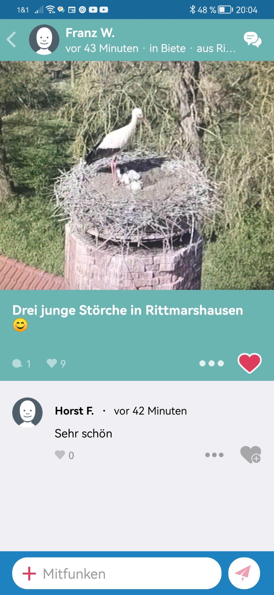 erfreuliche Meldung vom Storchenhorst. Die eine MS Wohnung ist durch ein Verlobungspaar angenommen. Es wird auch schon übernachtet.