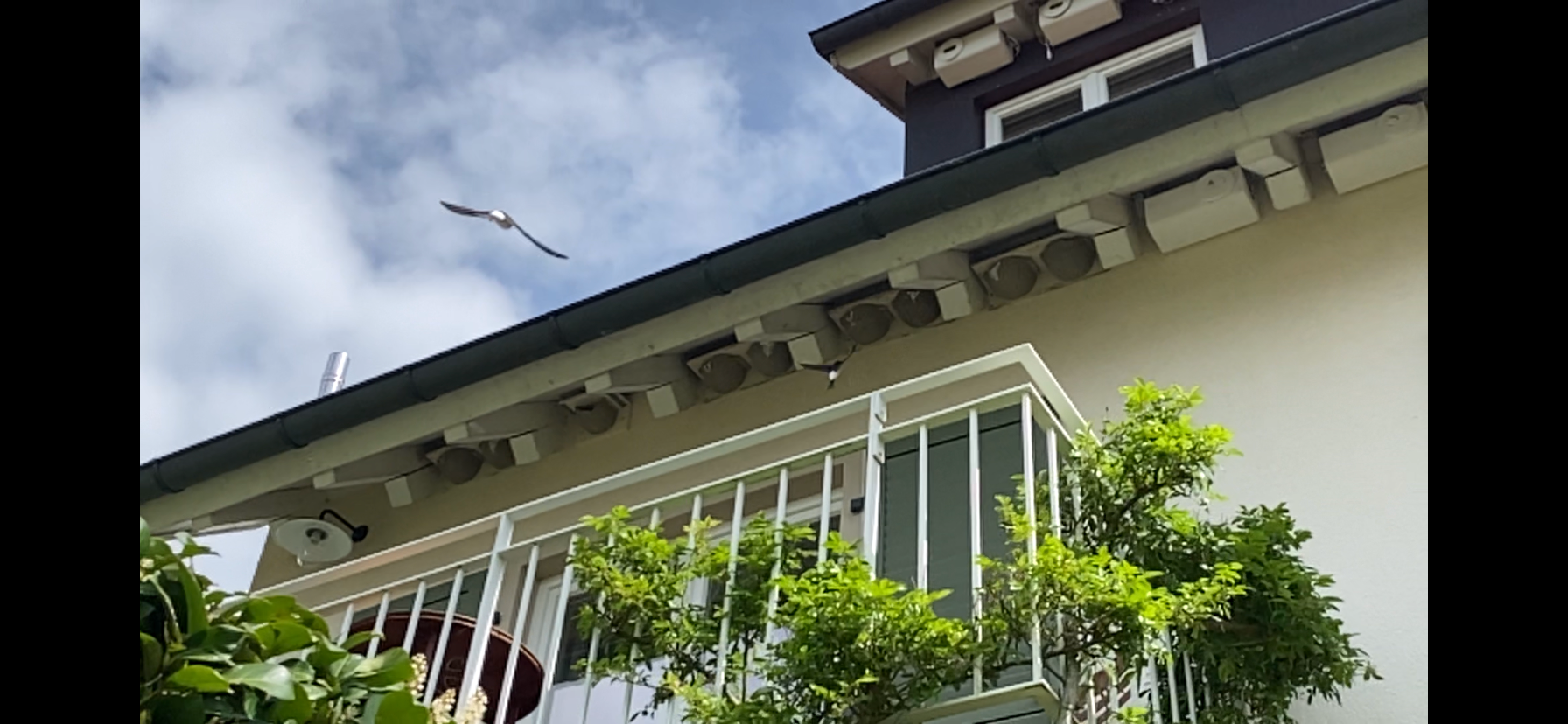 dort, wo sich ein im Winter durch Haussperlinge zerstörtes Schwalbennest befand, habe ich gestern drei Kunstnester aufgehängt. An dieser Seite des Treppenhauses befinden sich nun sechs Nester.